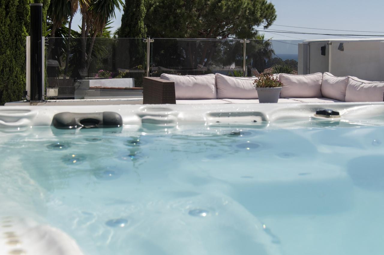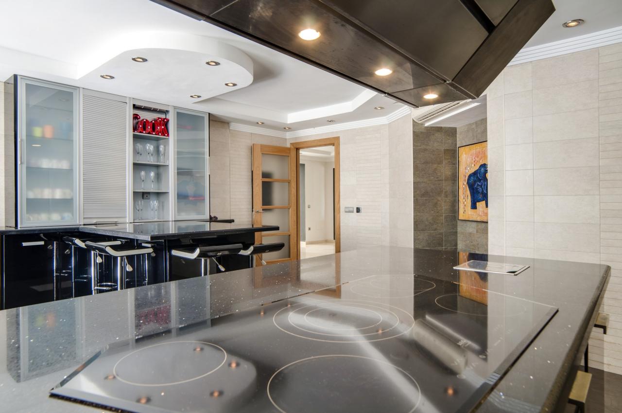 Whites, neutrals and soft tones create a harmonious background from which to enjoy the views and the wonderful exteriors. The owner has a great passion for all things Versace and touches of furniture, fabrics and trends can be found throughout. Bedroom suites are soothing, well-sized and offer plenty of natural light. Beds are comfortable with good-quality linens and synthetic pillows. Four bedrooms are located in and accessed from the inside of the home. Two can be reached from the back of the house and two can be used as an independent apartment underneath the house. The en-suite bathrooms are immaculate with lots of lovely marble, sleek lines and modern amenities – some have a very modern jet shower cubicle.