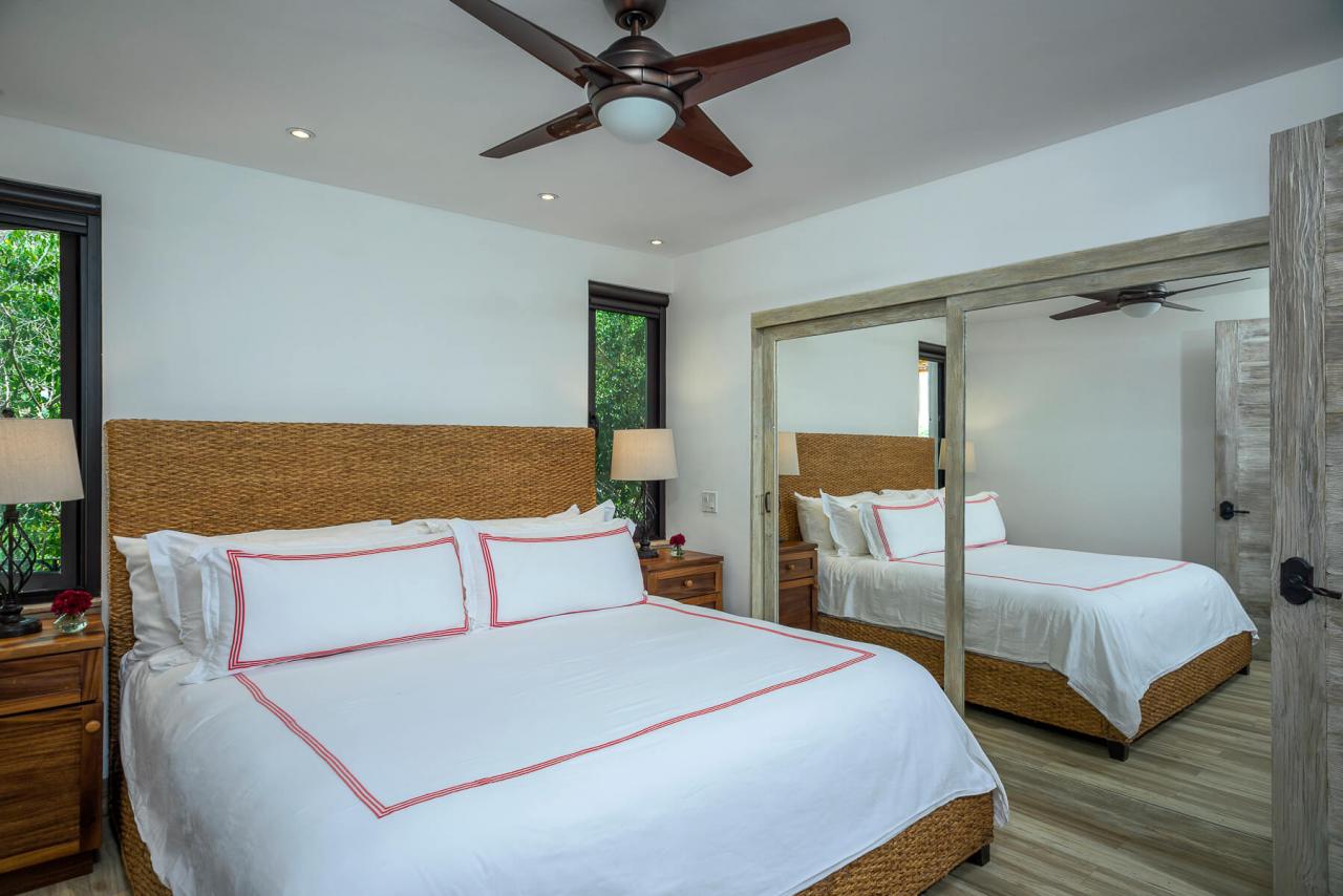 The Master bedroom has a uniquely painted ceiling to look like clouds. The room has large sliding glass doors and private terrace with a secluded pool. All other bedrooms boast en suite bathrooms, TVs, private terraces, and beautiful views.