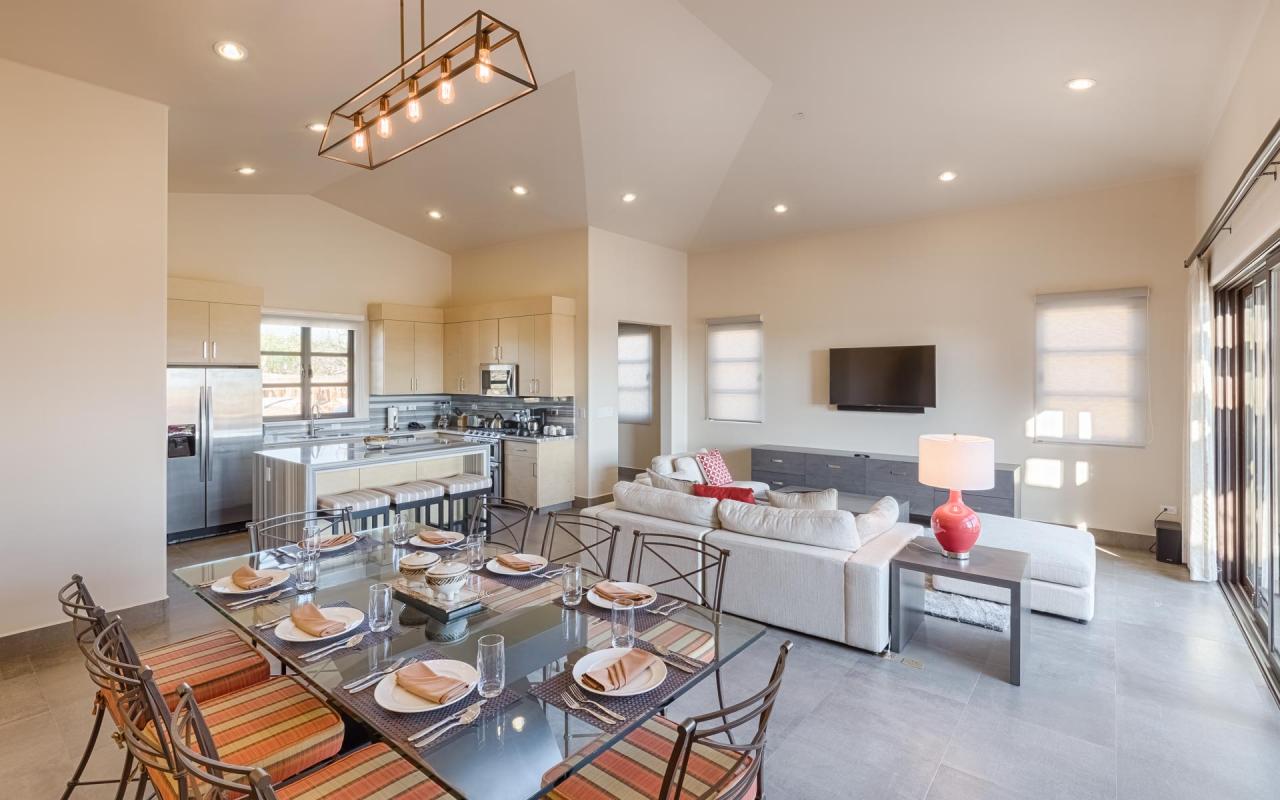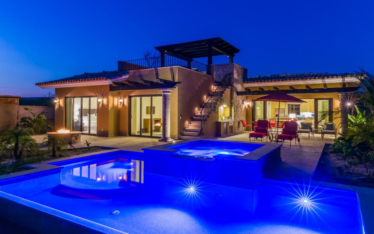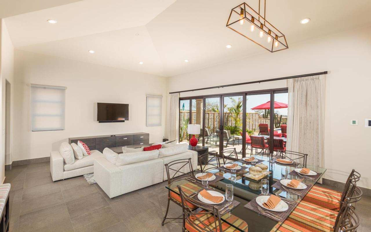 Access to Diamante Resort’s golf courses, spa, beach club, health and wellness centre, and ten acre Crystal Lagoon are included with your stay at Casita eighteen. There are also a couple great restaurants and bars on the resort property if you’re feeling like dinner out. If you’re spending the night in, Casita eighteen has formal dining space for eight inside and alfresco dining on the terrace. There’s also a refreshing swimming pool and a hot tub outside of the, golf view, terrace.