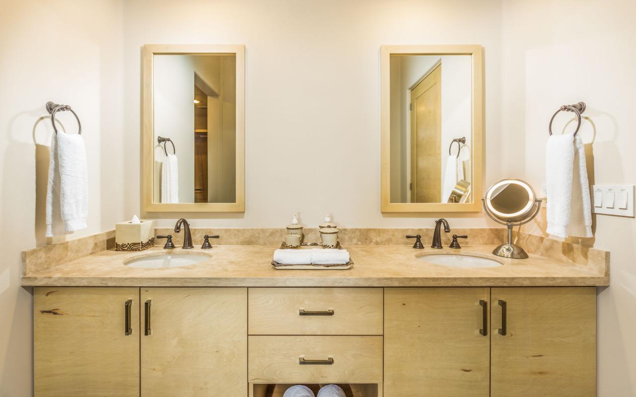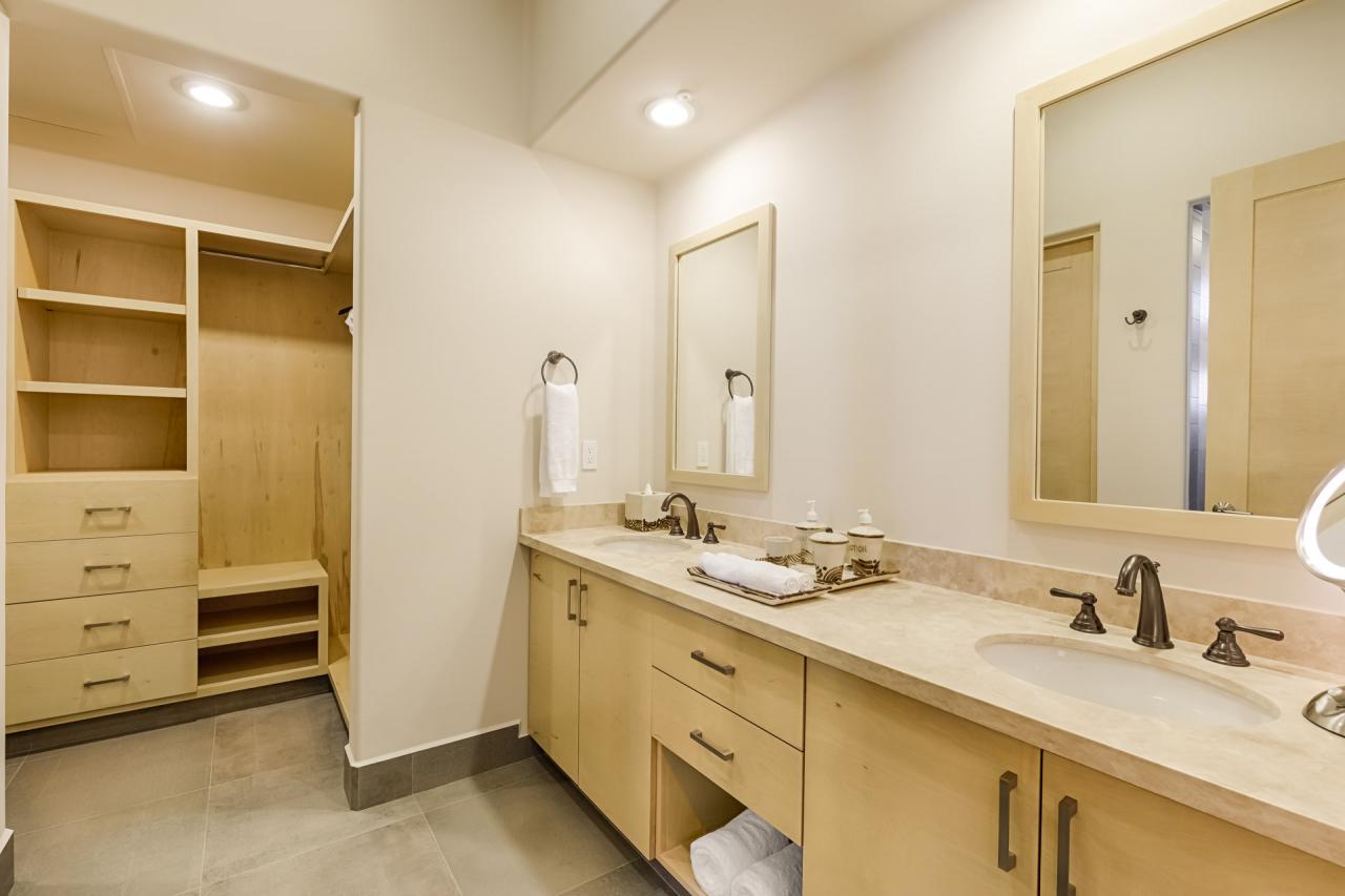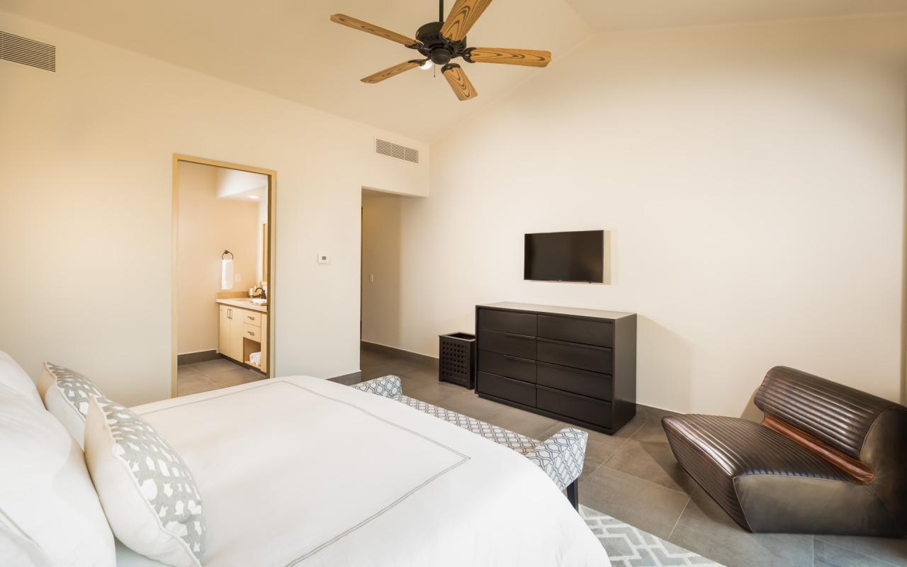 Two of Casita’s three bedrooms feature king sized beds, en-suite bathrooms, and walk-in closets. The third has a queen bed with an adjacent bathroom, walk-in closet, and a seating area with television.