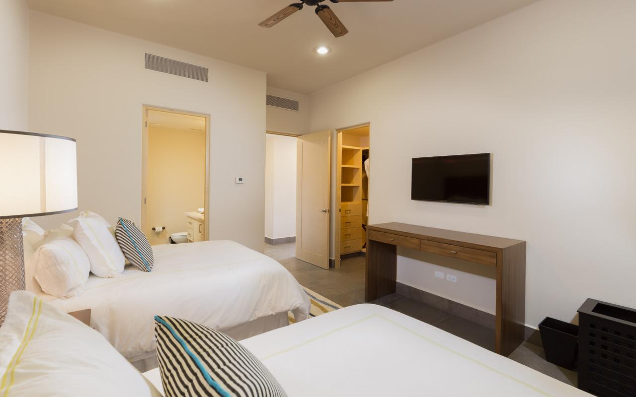 - Bedroom 3: Two queen beds, bathroom with shower and bathtub, walk-in closet, TV, ceiling fan, safe