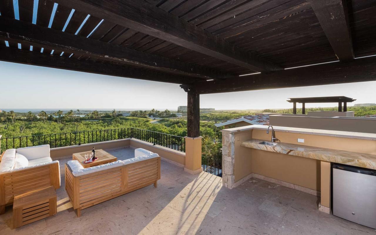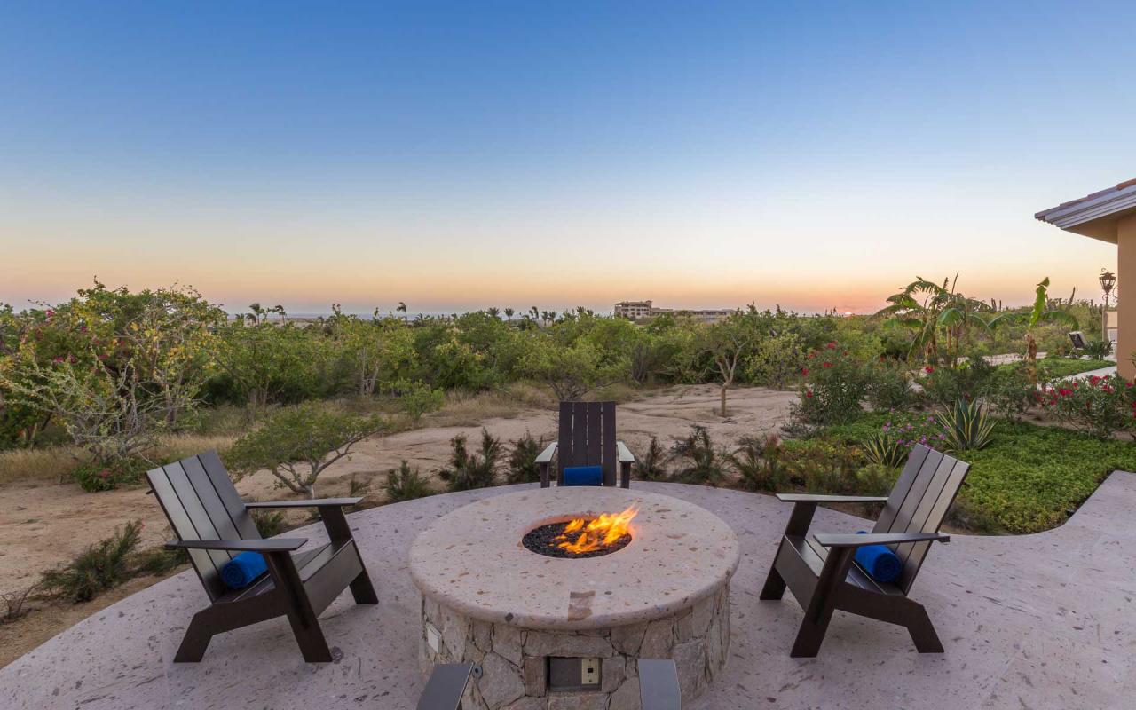Casita 2 features an ample, ground-floor terrace as well a comfortably furnished rooftop terrace with panoramic views of the shorefront golf course. Cook a delicious barbeque lunch and relish it at the alfresco dining table, kindling a fire in the outdoor hearth. Mix evening cocktails on the roof terrace, and savor them while beholding the majestic vistas. At night, sip wine by the firepit under the stars.