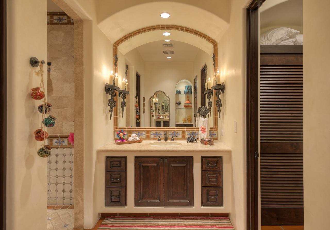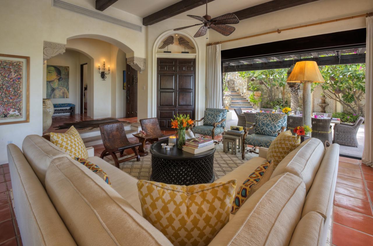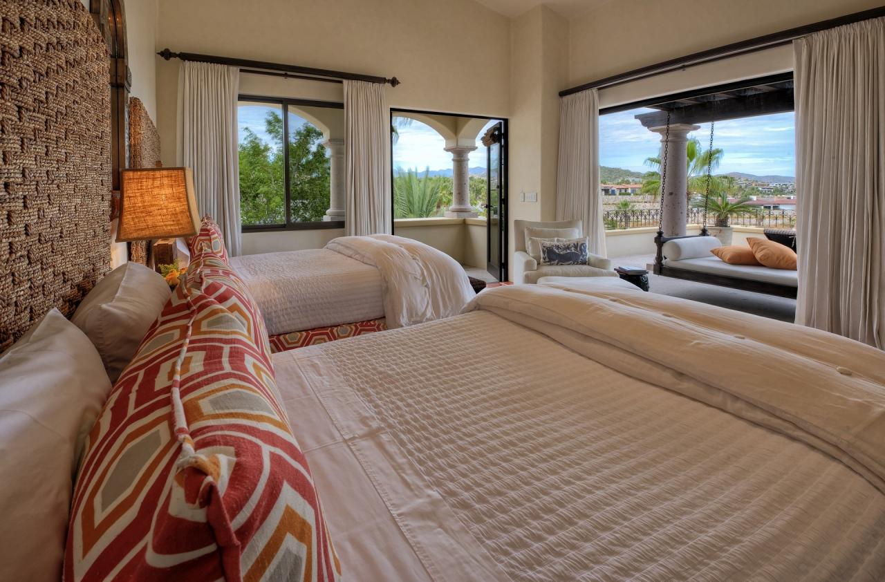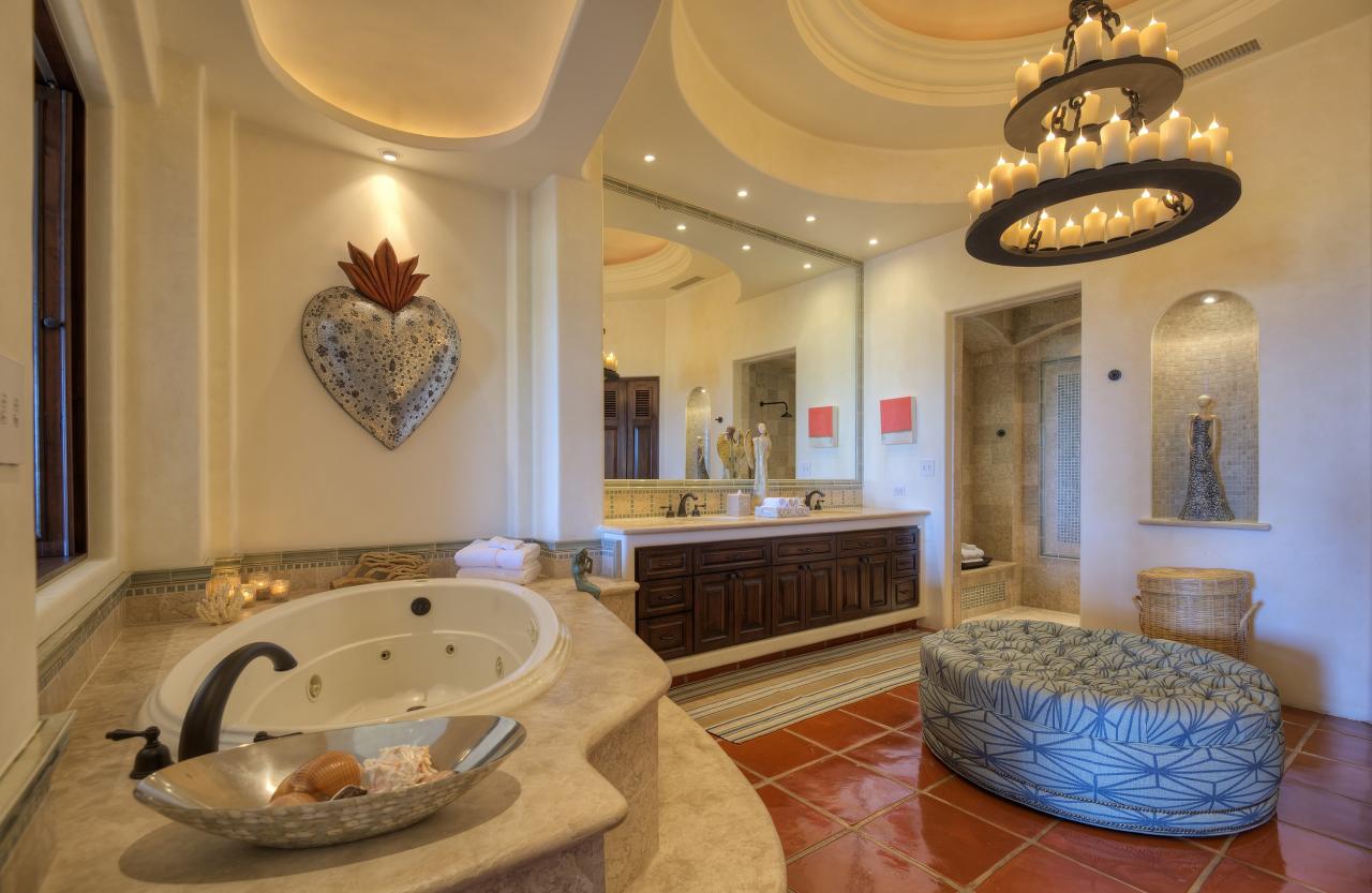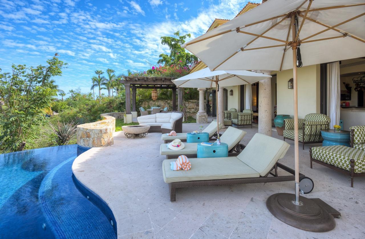 Sophisticated décor and elegant architecture dazzle the eye and provide a mesmerizing counterpoint to the extraordinary outdoor living areas of Casita 37. Gorgeous during the day, the home comes alive at night when the fire pit is lit and the setting sun casts shadows over the jaw-dropping infinity pool. Dinner is served just steps away in the graceful outdoor dining area, after which guests can retire to the brightly decorated living room — still admiring the view through open glass pocket doors. A late evening dip in the hot tub or the master suite’s jetted tub soothes tired muscles before bed. In the morning, refreshed by an outstanding night’s sleep, guests can drink in the breathtaking view along with their coffee under the shade of the traditional palapa.
