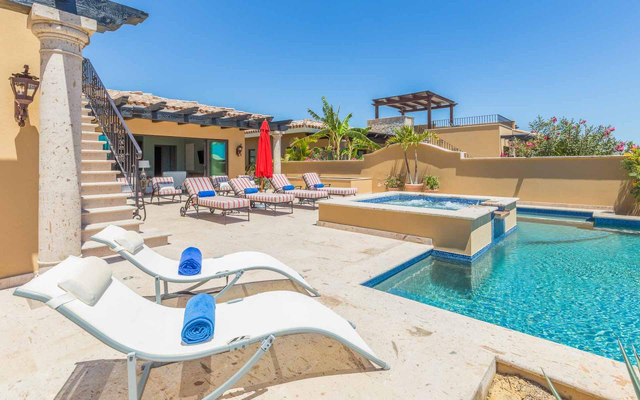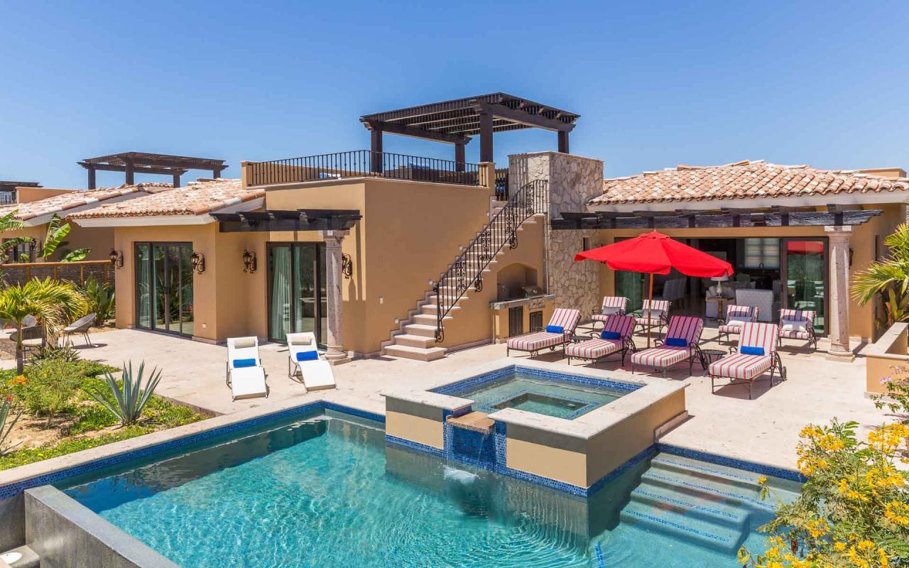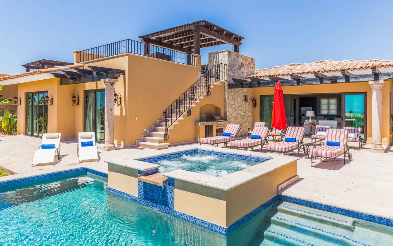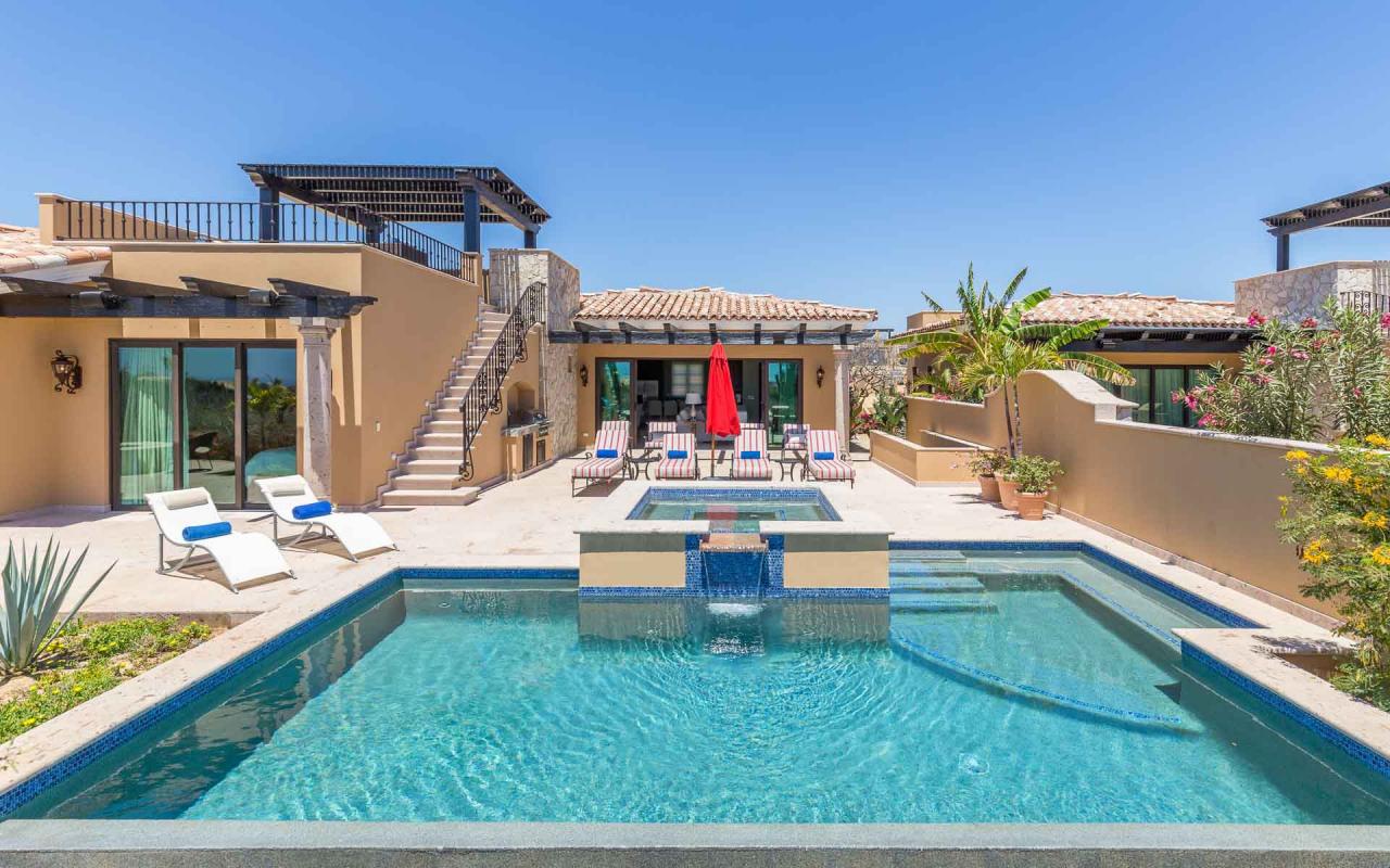Las Casitas are a community of three-bedroom luxury villas within Diamante Cabo San Lucas, an extraordinary, oceanfront resort about six miles from downtown Cabo. Guests enjoy access to the resort's two championship golf courses—including the Dunes Course, ranked 38th in the world by GOLF Magazine, and two additional courses designed by Tiger Woods—as well other outstanding amenities. Casita 5 additionally enjoys a private swimming pool and hot tub, along with exquisite interior and alfresco living areas.