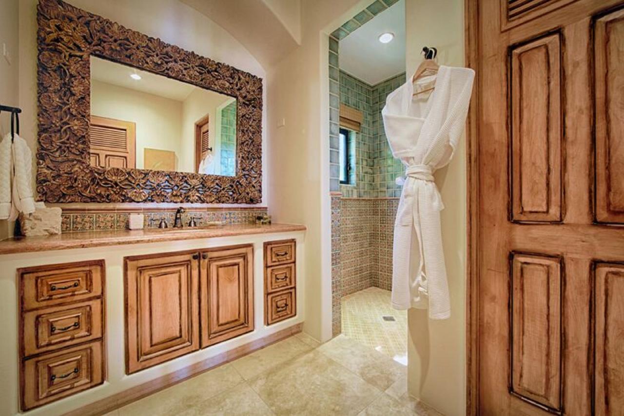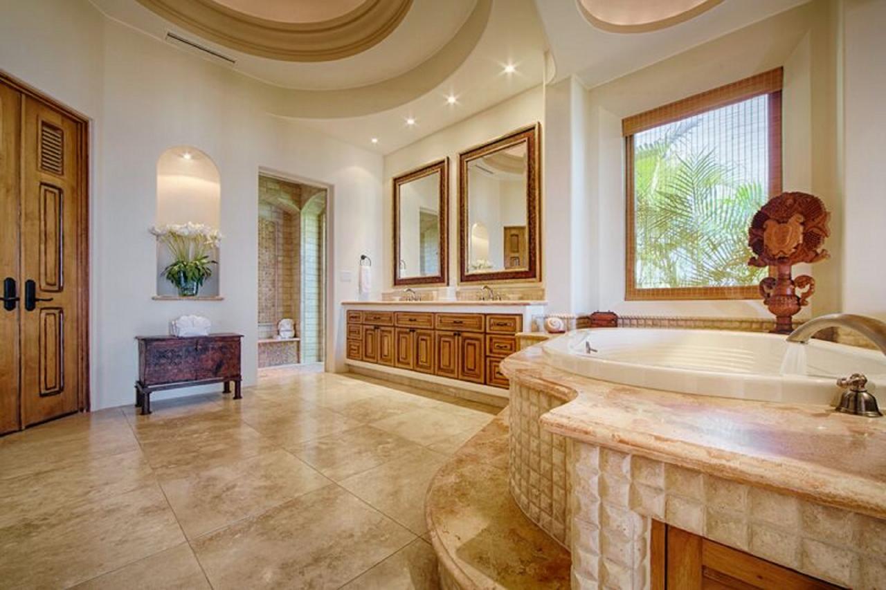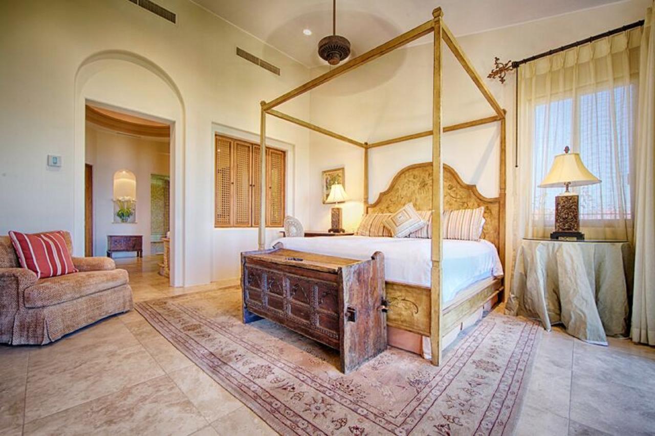 Snuggled into the hillside, Casita 50 is a haven for those looking for an escape from the mundane. Here there is no need to go indoors — except to sleep in the down-covered beds. A marvelous stone wet bar also houses an impressive outdoor kitchen, allowing guests to prepare all of their meals al fresco if they choose. Diners can eat at the bar or move to the cozy dining area under the veranda. If the evenings turn chilly a delightful fireplace is available. The interior — if a bit of shade and air conditioning is preferred — is equipped with every luxury including a spacious gourmet kitchen, living areas with expansive views of the ocean and opulent baths.