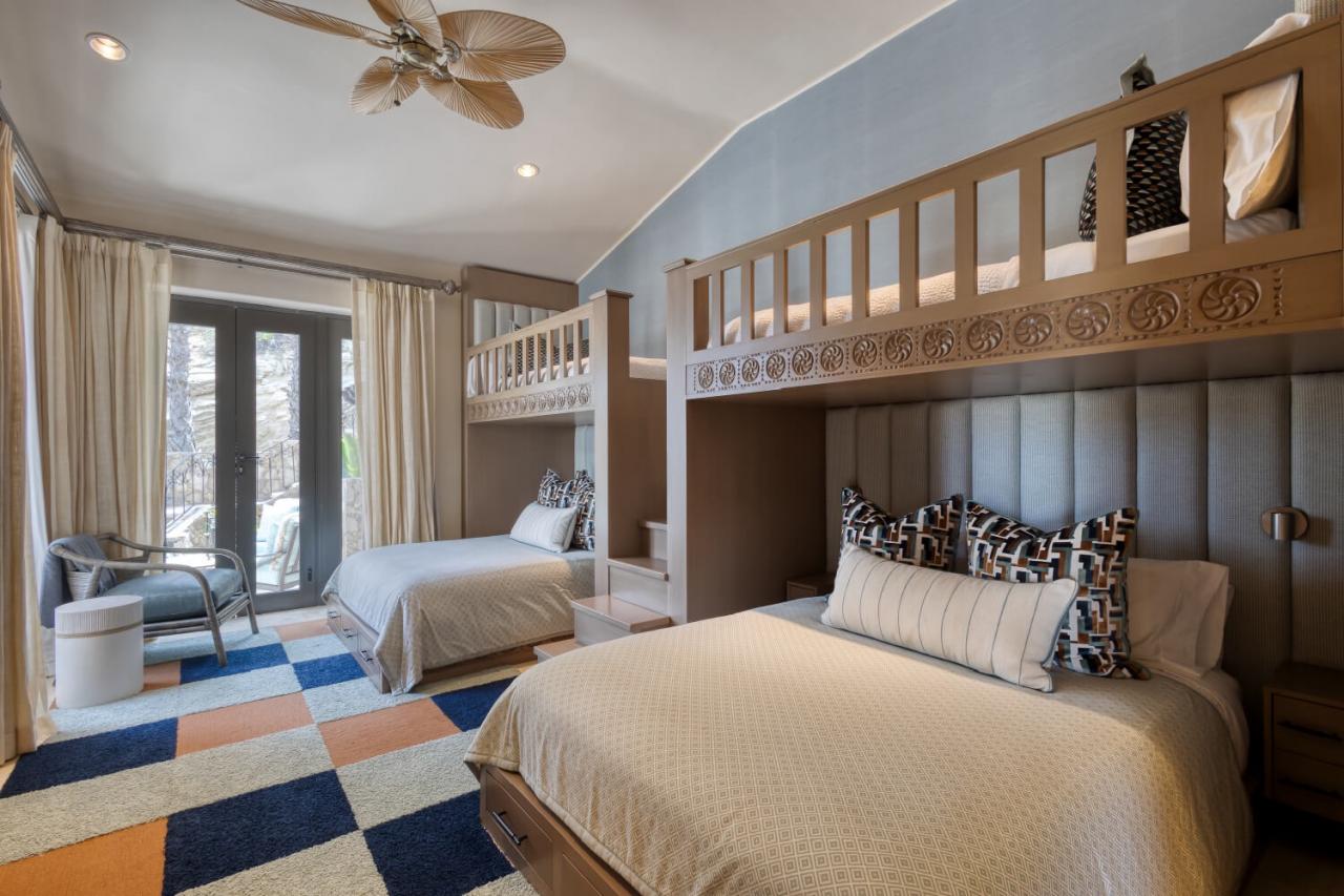 Bunkroom: This room has two bunk beds with twin-sized beds on top and full-sized beds on the bottom. The room also has a private bathroom.