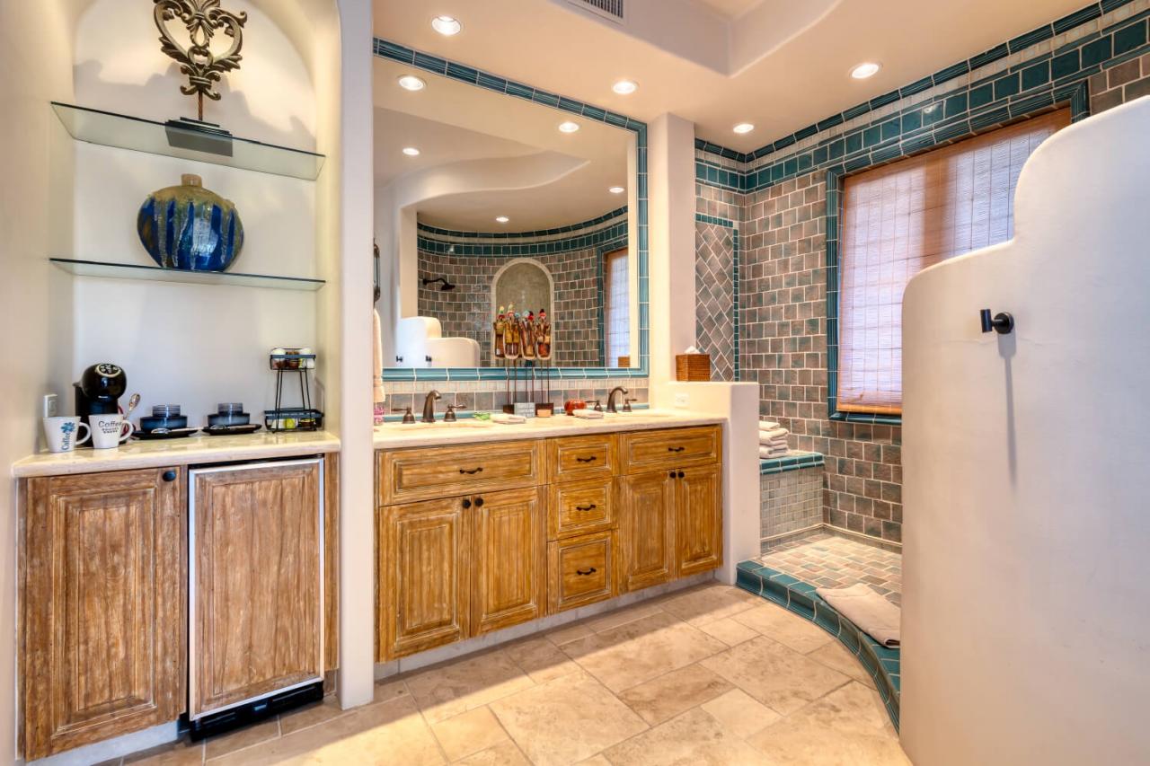 The pool area has the most perfect space to entertain and relax. Guests have a private pool and hot tub to enjoy that also features views of the Sea of Cortez and its golden sandy beaches. In any of the lounge areas outside, guests can grill food and enjoy drinks. Not only is there a private pool and hot tub, but Casita 35 is also close to the beach and easily accessible with the included golf cart.