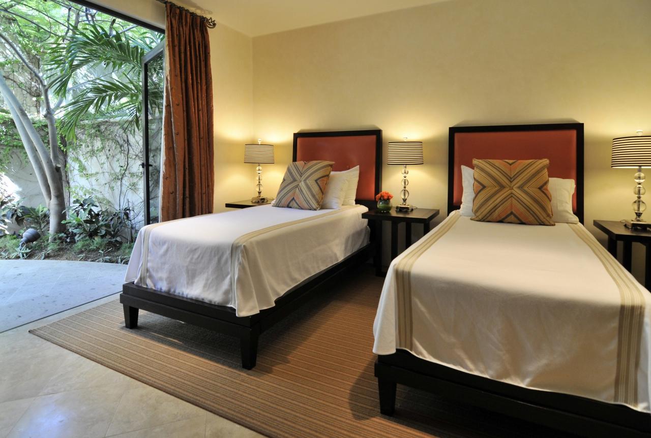 Just the right size for a group of friends looking to get away from it all, Terraza 371 is an upscale terraza that offers inviting places to gather, as well as secluded areas for meditation. Guests with a culinary bent will appreciate the magnificent island kitchen — fully equipped for exhibition cooking — with counter seating for an appreciative audience. The concierge can conveniently stock the kitchen before guests arrive. Informal snacks at the island will give way to formal dinners at the graceful dining table, perhaps followed by a late night swim or wine on the pool terrace. Each of the four sumptuous bedrooms offers opulent bedding, televisions, capacious baths and private terrace access for relaxed evenings.