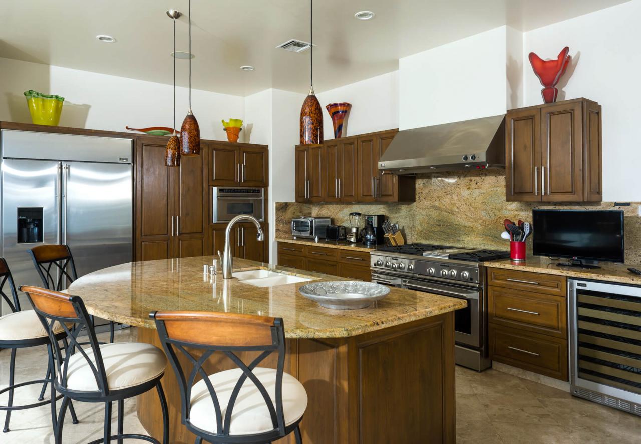 There is a large recessed glass door that connects the gourmet kitchen to the pool deck giving guests the opportunity to turn an indoor soiree into an outdoor fiesta. The deck also has plenty of opportunities for guests to enjoy more outdoor time under the shade of the palapa, on the plush lounge beds, around the bar and grill areas, or in the grand infinity pool that overlooks the ocean.