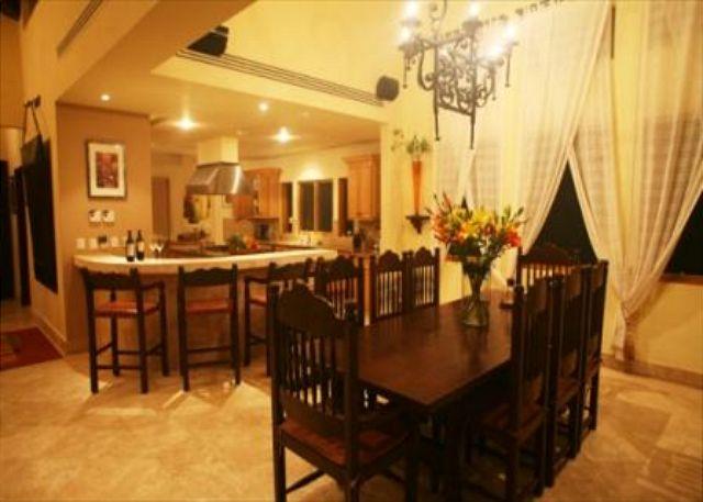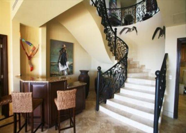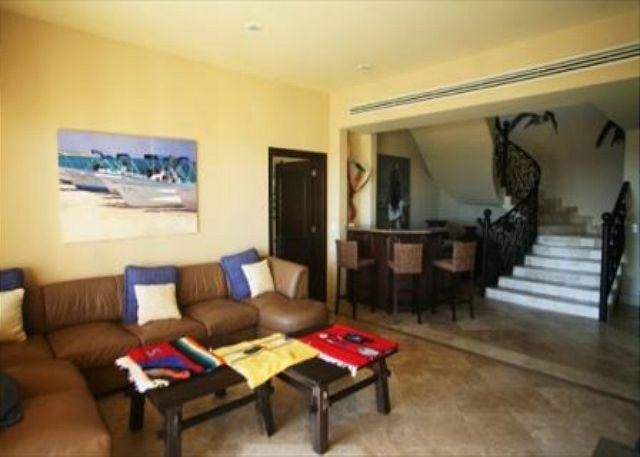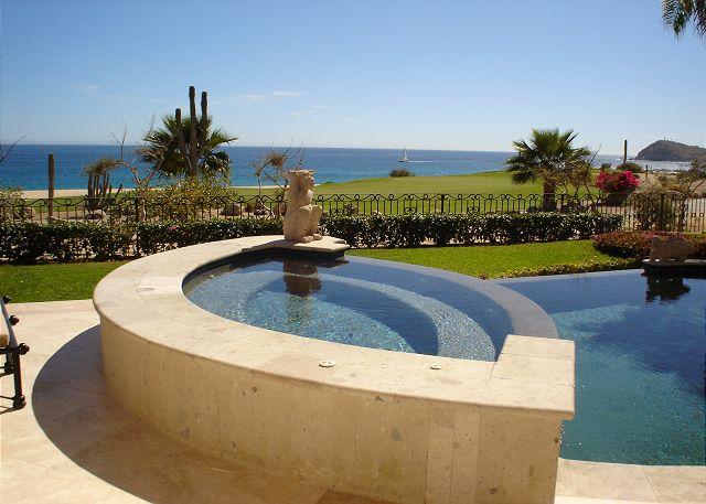 Villa Golondrina is a 4 bedroom, 4 bathroom extremely beautiful ocean front villa. With over 5,300 square feet, this is an ideal vacation rental for those with large families. This property can sleep up to 14 guests, has the most amazing views of the Sea of Cortez and is luxurious both inside and out. From the fully equipped chef's kitchen to the beautifully decorated bedroom suites, Villa Golondrina gives you everything you need to feel right at home. Outdoors you will find gorgeous views, beautiful landscaping, and even your own private infinity pool with hot tub. Guests also have access to the Sheraton Hacienda del Mar and Fiesta American Grand Resorts. They are also welcome to the club house at the Cabo del Sol.