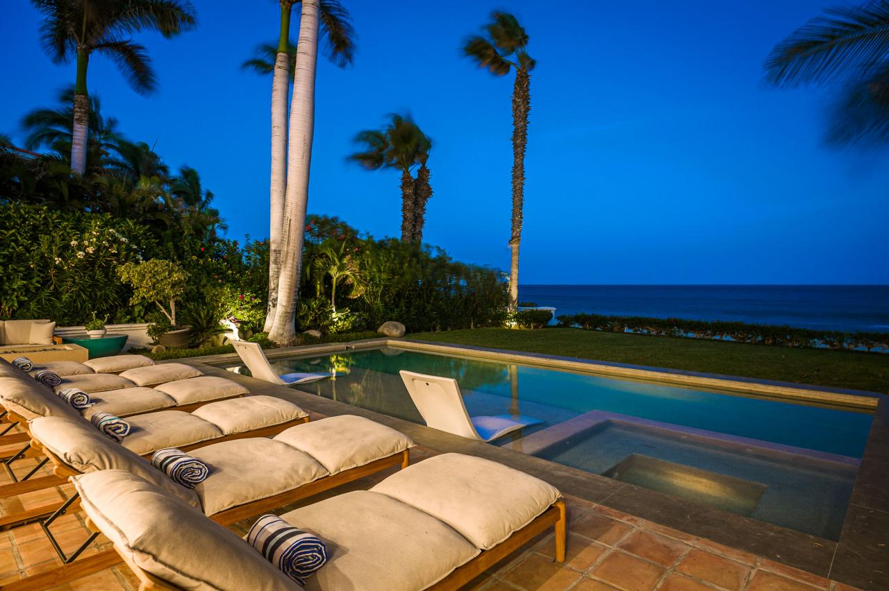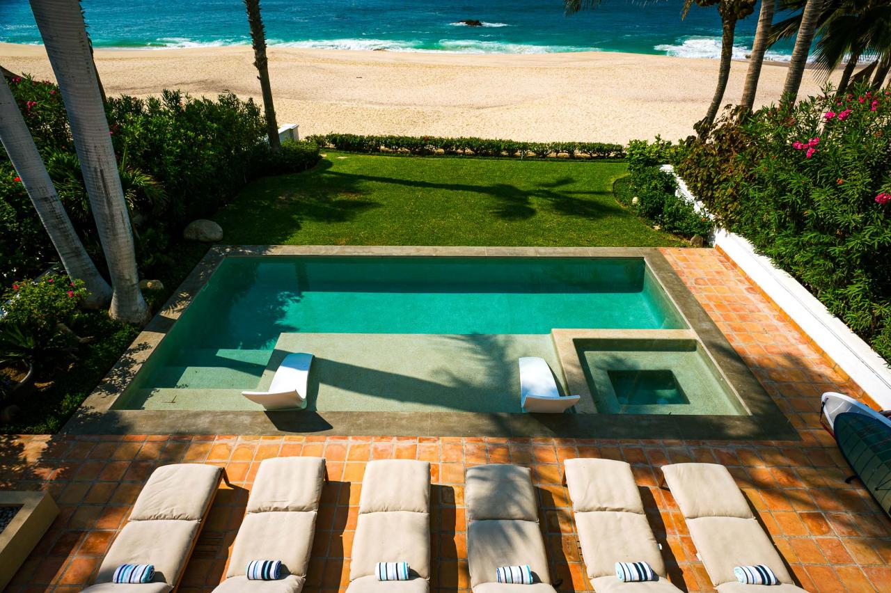 Villa las Abejas offers a luxurious beachfront escape in one of Los Cabos' most prestigious communities, Villas del Mar in Palmilla. With its newly renovated interior, this Los Cabos villa exudes high-end sophistication, featuring top-of-the-line finishes and amenities, including stainless steel Thermador appliances, a Sub-Zero wine fridge, and designer linens. Accommodating up to eight guests and one child, the villa includes three spacious bedrooms, a den with a twin trundle pullout, and five bathrooms, all designed to provide a comfortable and elegant stay.