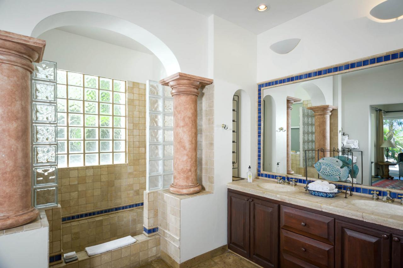 The kitchen, living, and dining areas make up the central living space of Villa Las Brisas. The central living space is open so family and friends can be together. With each bedroom having a private terrace, they all have gorgeous views of the lush greenery and clear waters.