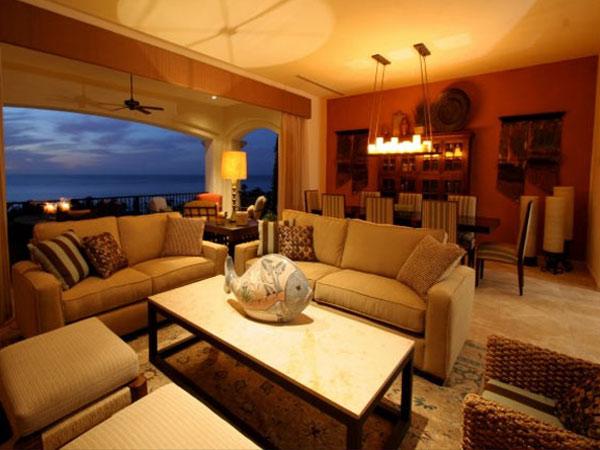 Villa Pamela is located in the heart of Punta Ballena, a shining star of Cabo’s upscale resort communities and home to the world-class Esperanza Hotel. The stunning Villa is an exquisitely appointed 3,000 square foot residence with an additional 750 square feet of outdoor furnished living area. The residence is located on the third floor of an intimate condominium building known as The Auberge Private Residences at Esperanza, which has been built with a limit of two residences per floor, providing enhanced privacy and breathtaking views of blue water from every room, plus views of Cabo’s famous “Drinking Dragon,” or Land’s End. The Villa has 3 bedrooms, each with its own luxury bathroom. Brand new and professionally furnished in a contemporary Mexican luxury style, it is easy to feel right at home in Villa Pamela. Designed with the Cabo climate and lifestyle in mind, both the living area and master suite transform into a comfortable indoor/outdoor living area when the expansive glass sliding doors are fully opened, disappearing into the wall.