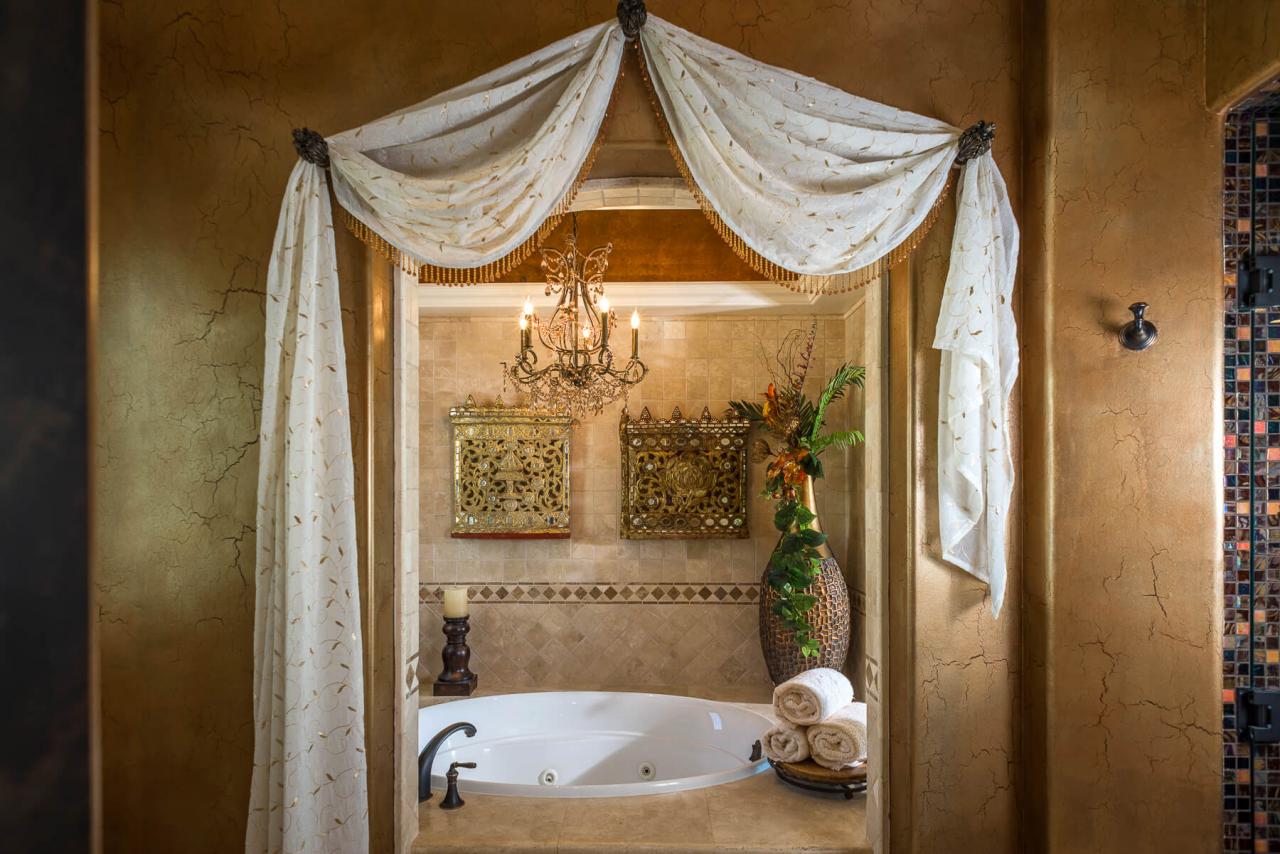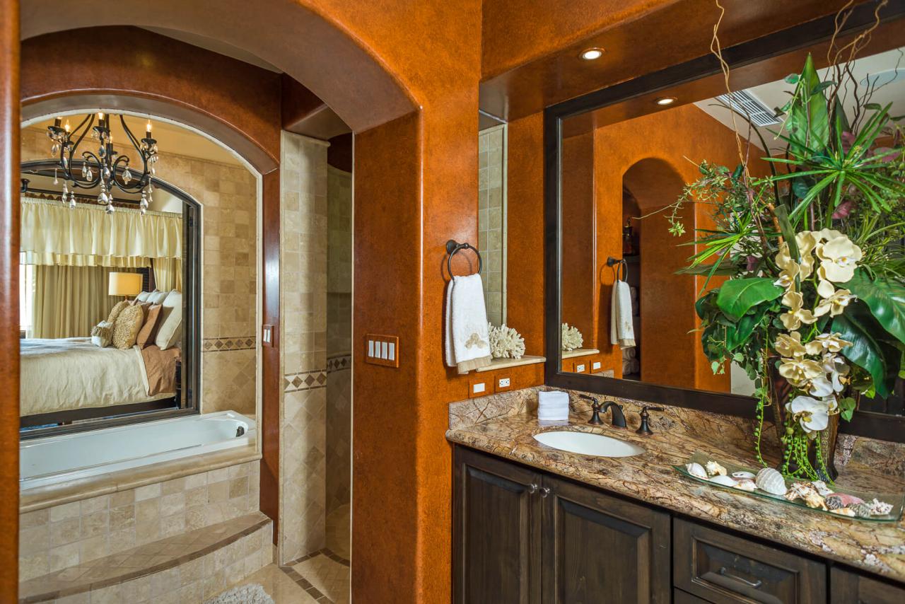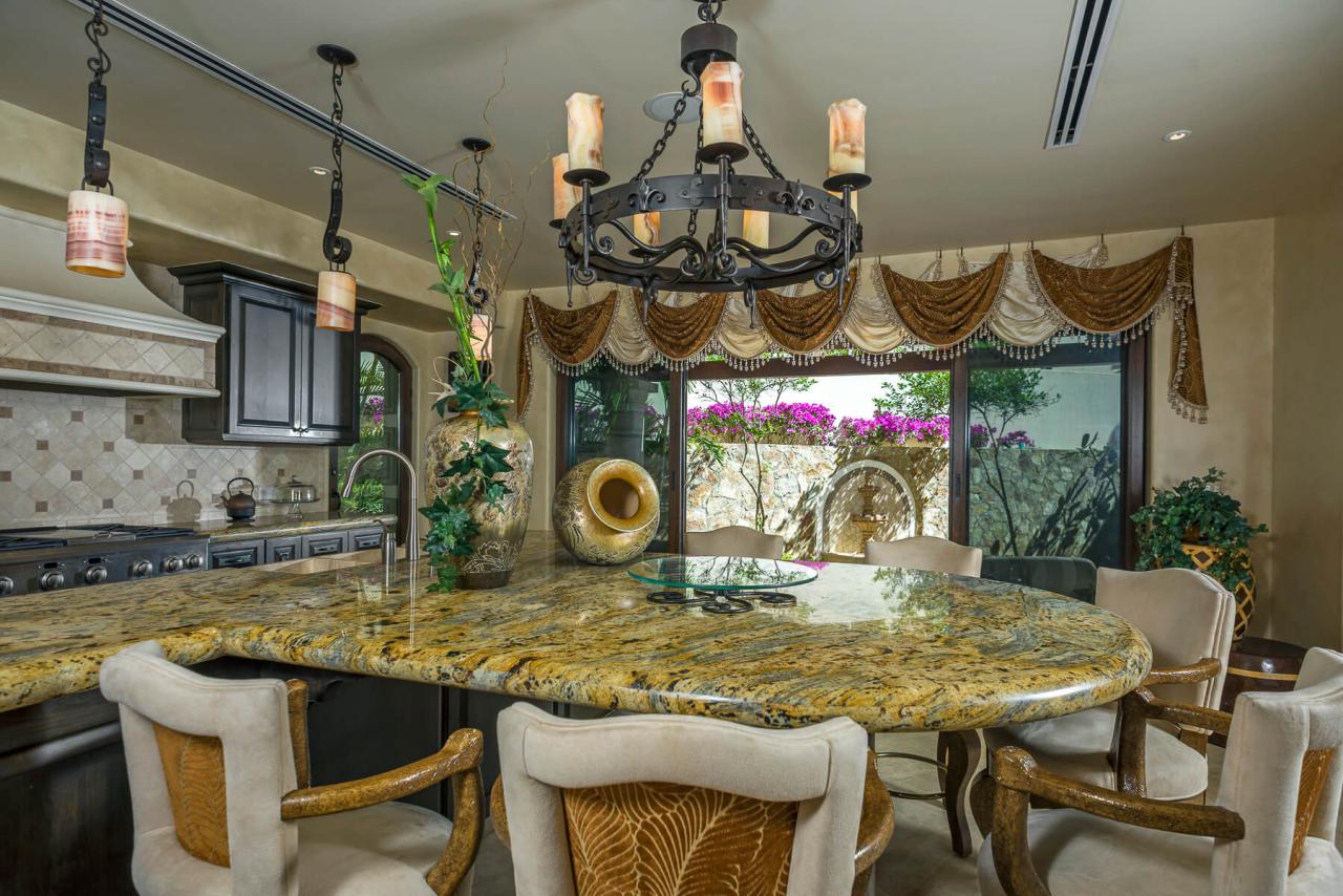 Villa Sandcastle is a stunning home away from home located in the exclusive gated community of El Encanto. This luxury Cabo San Lucas rental also boasts stunning views of the azure waters of the Sea of Cortez. November through April guests might catch a glimpse of whales swimming by. Outdoors at Villa Sandcastle, the sunken fire pit in the middle of the pool is the perfect place to lounge, day or night!