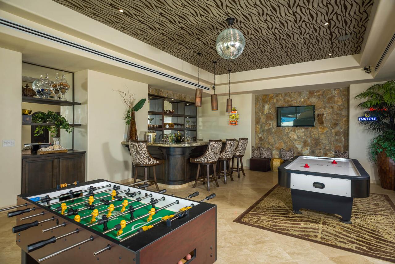 Villa Sandcastle has 5 incredible full bedrooms, a home office, home theatre, a game room with bar, air hockey, and foosball. The villa is located right next door to a fabulous new beach club with a restaurant and a gym.
