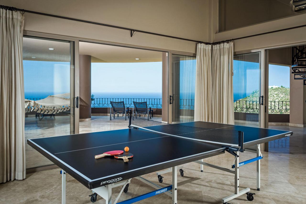 Tucked into the hills overlooking Pedregal Beach, this 10-bedrrom Los Cabos luxury villa blends upscale luxuries with high-end appeal. With multiple levels of the home and its outdoor spaces to choose from, there's no need to compromise. Each terrace boasts its own lavish features. Open the sliding glass doors for a seamless indoor/outdoor experience. This terrace includes lounge space and gently rocking hammocks, perfect for peacefully taking in the sand and water views below. The main, sun-soaked terrace features a refreshing infinity-edge swimming pool and Jacuzzi, both with commanding water views. The outdoor space is equipped with eight deck loungers, multiple seating and dining areas, a gas BBQ, an outdoor stereo system, and a fire pit.
