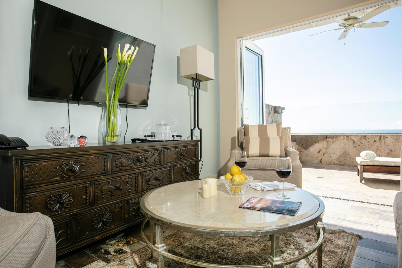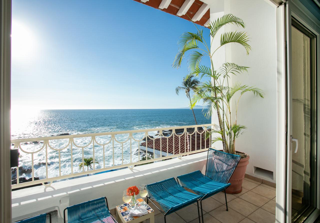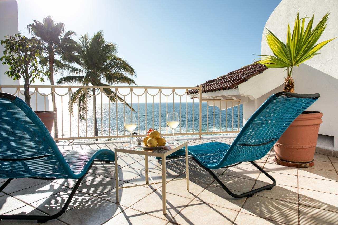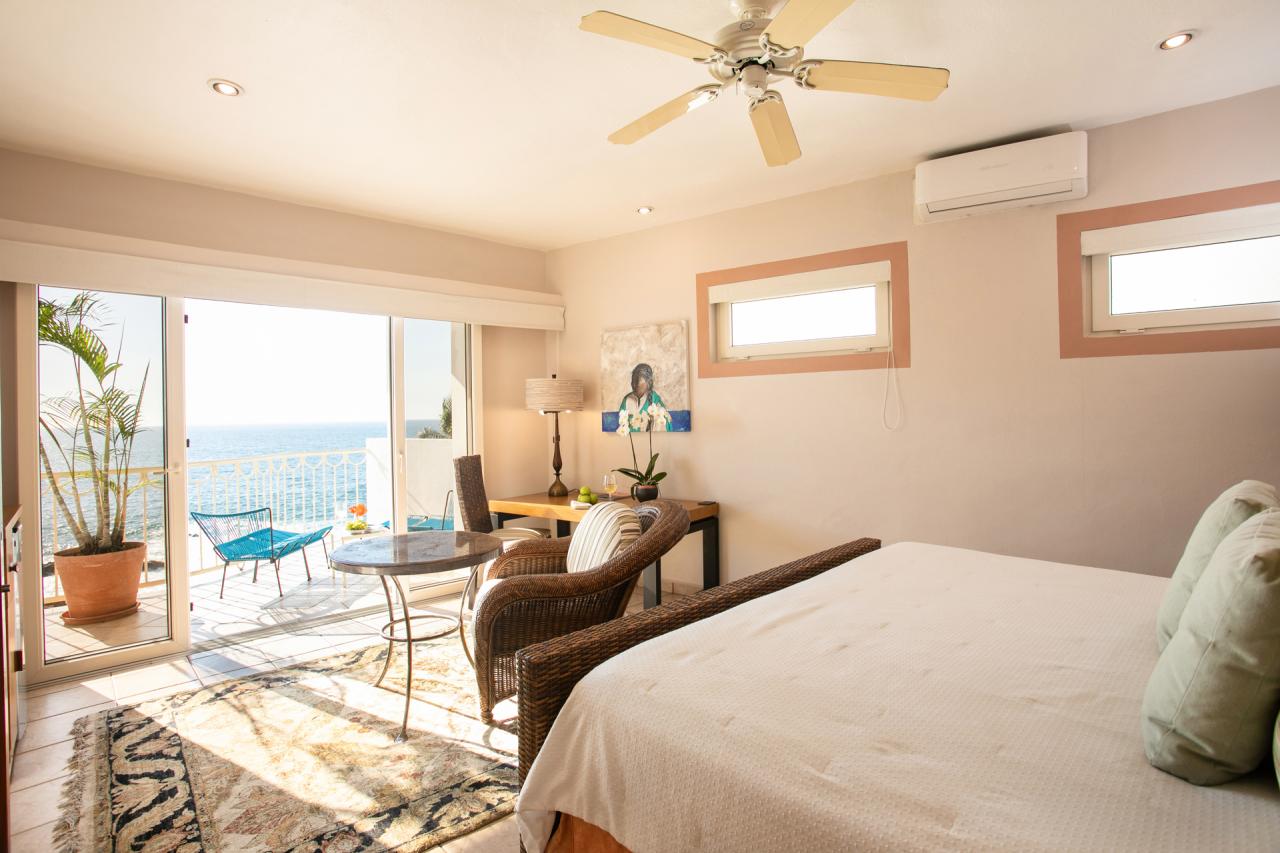 - Bedroom 1: King bed, en suite bathroom, private sitting area, private terrace, ocean view