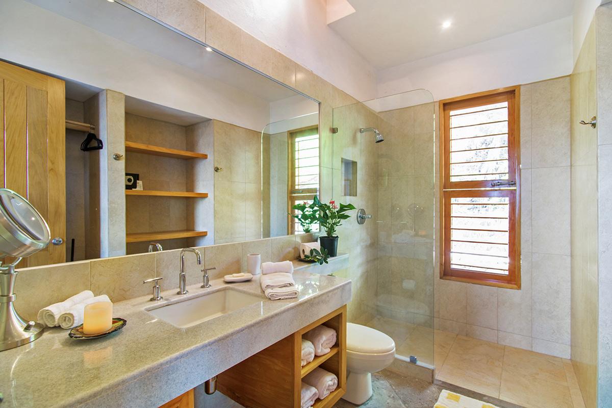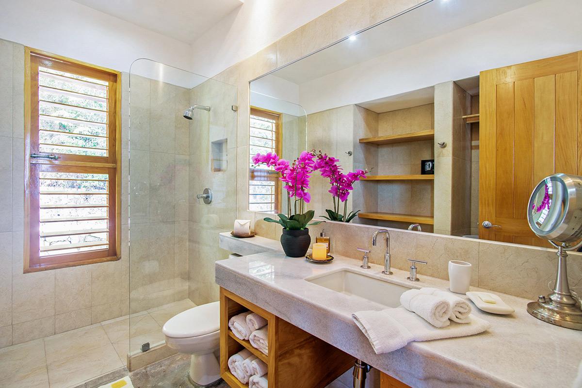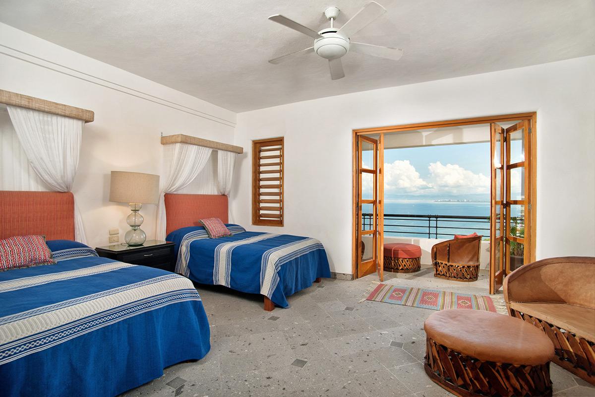 Lucia features two master bedrooms with king sized beds. There are two more bedrooms, both with a pair of queen beds, bringing total accommodations up to eight. And, each bedroom has an en-suite, private terrace, and an incredible ocean view.
