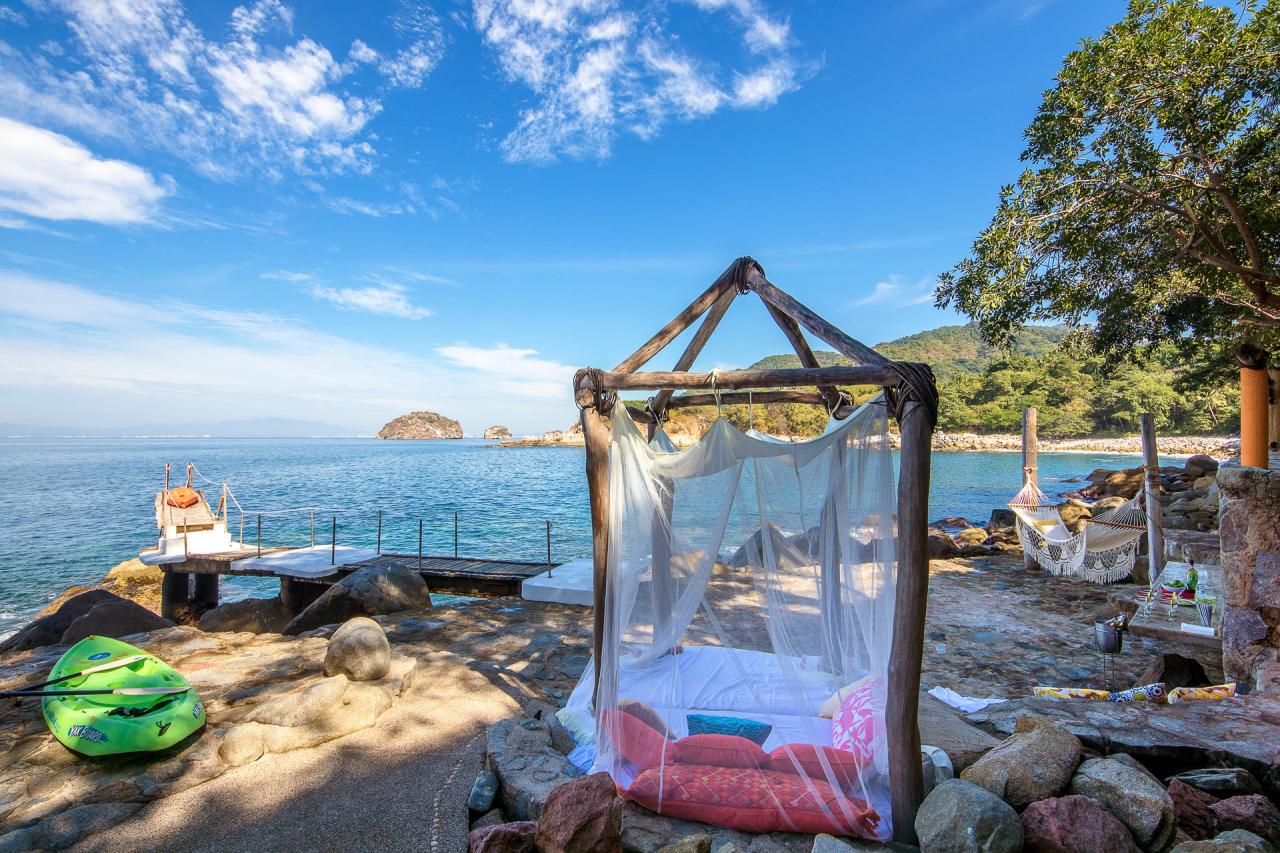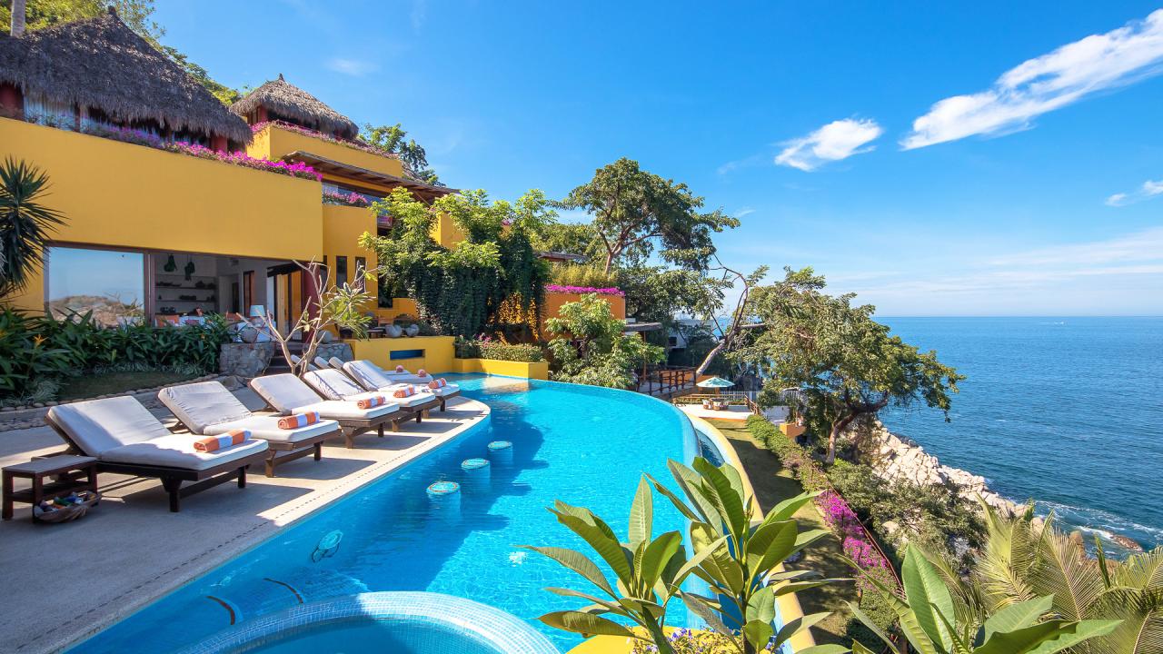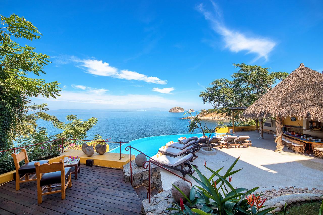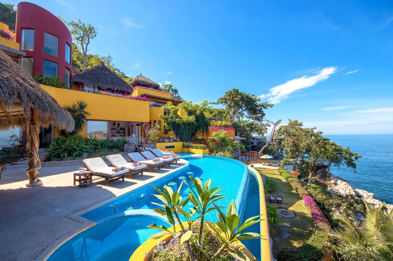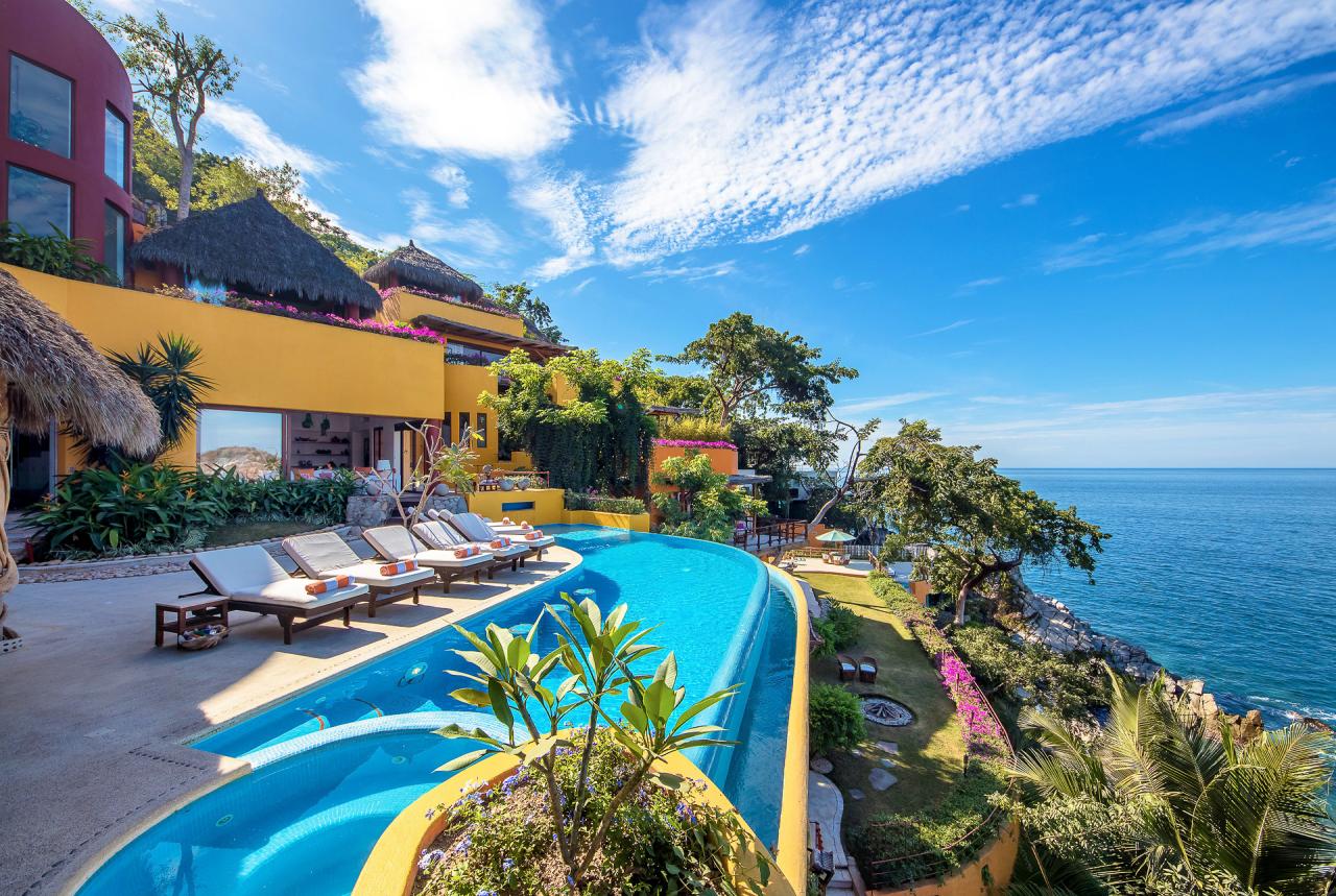 Villa Mandarinas is Mismaloya's newsest and brightest jewel. Overlooking the beach and cove where "The Night of the Iguana" was filmed, this architectural masterpiece cascades down six beautiful tiers of native vegetation, dramatic cliffs, and colorful gardens with breathtaking views of Banderas Bay. Originally named "Las Peñas" (the boulders) in 1541 by Captain Don Pedro de Alvarado, the Los Arcos Island Preserve looms impressively off the shore of Villa Mandarinas. Considered the centerpiece of the best views in Banderas Bay, Los Arcos stars as the highlight of every vista in the home.
