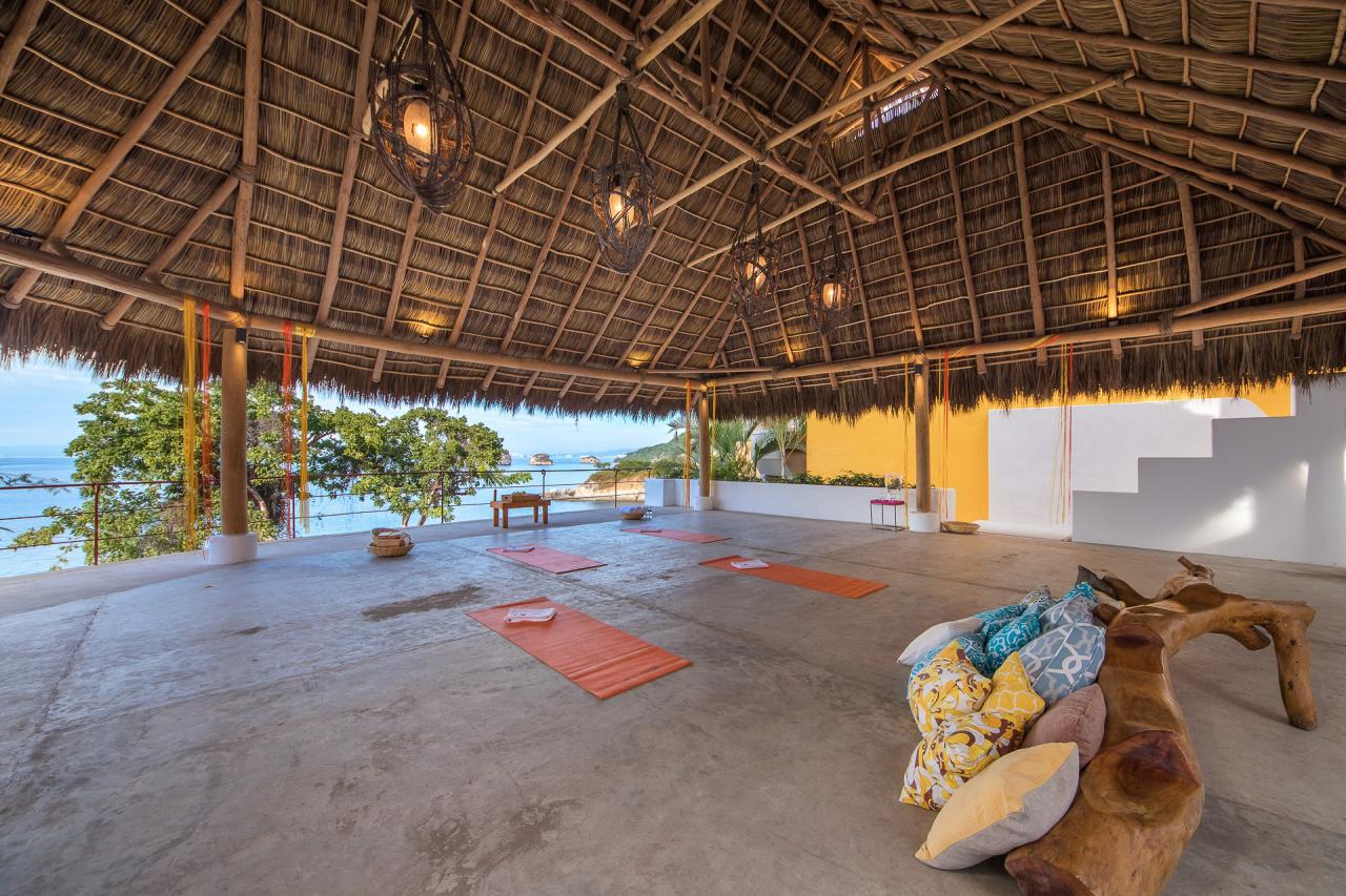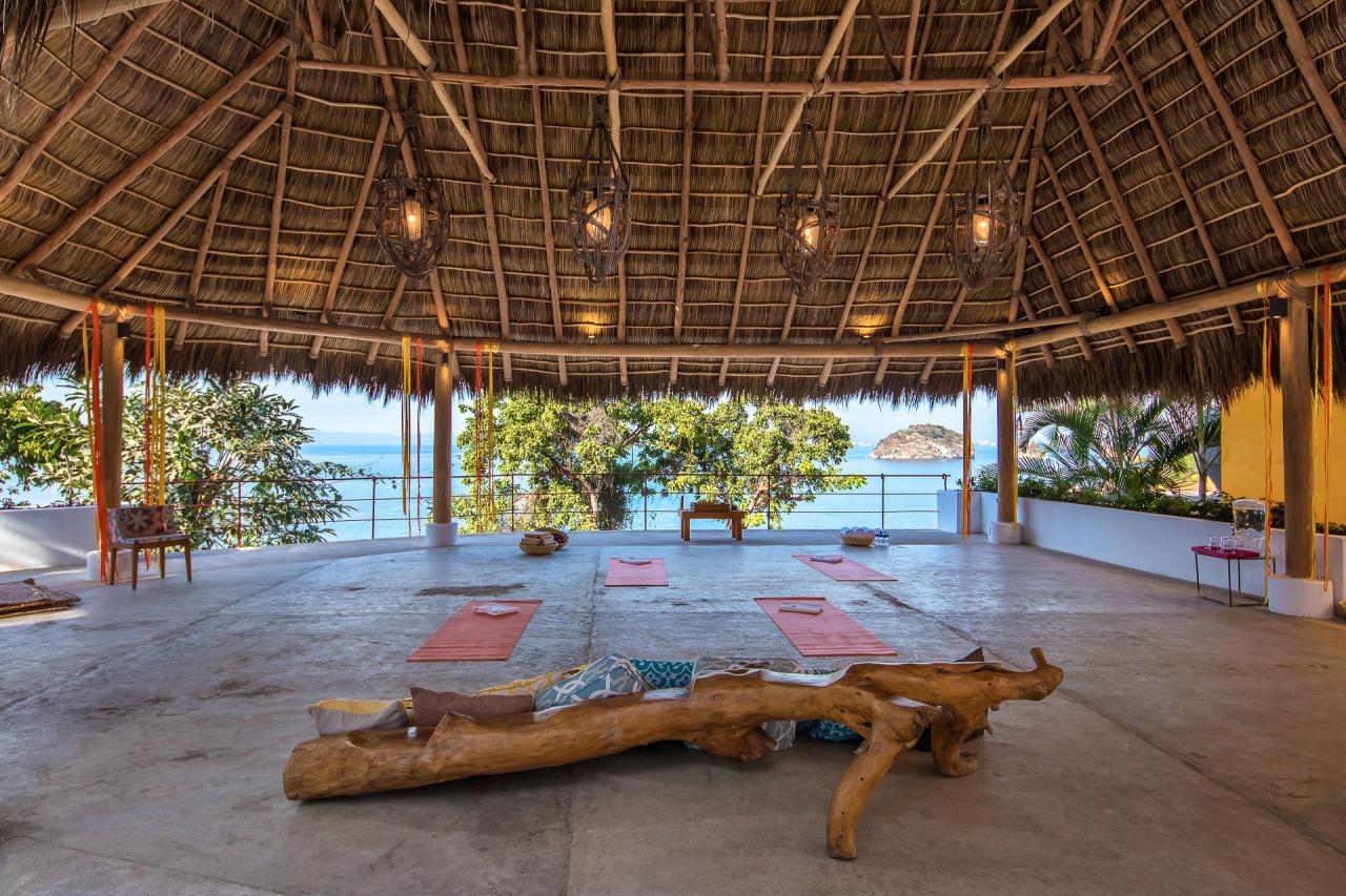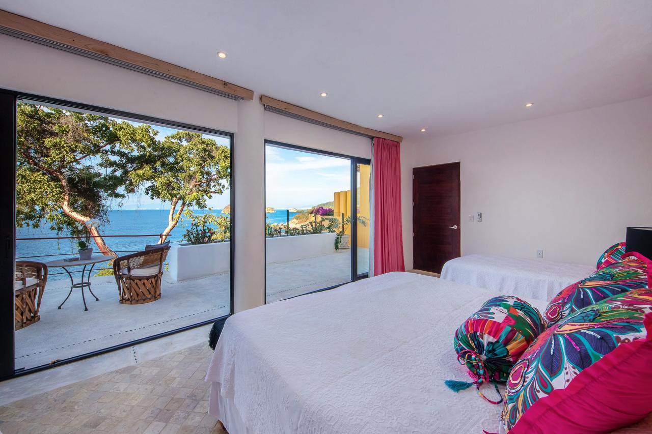 When you turn into the estates beautiful stone driveway, you are invited to enter Villa Mardarinas by the fluid and graceful opening of the soaring accordion garage doors. Made of honey colored primavera wood, these doors are only the first example of the innovation and beauty this estate holds. When you pull through the doors and park at the zenith of the cliffs of Mismaloya, you are greeted by the best view you have had on the entire journey. Soaring ceilings and conjoined great rooms open onto terraces, bedrooms, landings and patios throughout the house and the myriad variety of windows and glass doors. The cathedral like openness makes the privacy of the home that much more surprising. Four custom made hand blown chandeliers complement the loftiness of the home and accent the home’s custom furniture elements. The chandelier in the dining room hovers below the ceiling illuminating the one of a kind sabino wood table carved from a single tree which can seat 16 guests. The stairs, made from beautiful dark stained haya wood, act as the visual hub of the home. The base of the stairs below flows organically into a massive boulder bisecting the kitchen and dining area from the main living room. Each of the seven master bedrooms has a spectacular view of the bay with individual private terraces shaded by bamboo which gracefully compliments the colors of the estate. The unique features of each master bathroom speak to the creativity and artistic inspiration of Villa Mandarinas' designers. In one bedroom a half ton sink has been carved from a volcanic boulder so massive that the piece was installed and the room was built around it. Two of the master bathrooms share a single monolithic boulder stretching through two floors to bind the rooms with the natural elements of the land. In another master bathroom, a custom window offers a graceful curve of etched glass that accents the view of Los Arcos across the bay. Villa Mandarinas offers its guests an amenity unique even in the community of Mismaloya - the ability to arrive at your destination from the land or the sea. When you approach the estate by water, the home’s earthy and vibrant colors draw your eye from miles away. The property’s dramatic castle walls rising to the terraces, gardens and lawns above grow more and more impressive as you pass Los Arcos and continue over the water to the estate. As you step off the boat onto Villa Mandarina’s private pier the final chapter of the estate’s story is presented to you as the first. A private beach on one side of the property balances itself against a spacious natural salt water pool on the other. These features are completely unique and are an expression of Architect Alberto Alvarez’s vision of what a home this amazing deserves. The nature of this home is such that words and pictures can only offer a suggestion of the homes unique beauty, location and the inspiration of its architect and designer. Those who are fortunate enough to visit this estate will come away with a true understanding of what it is to live “La Pura Vida."