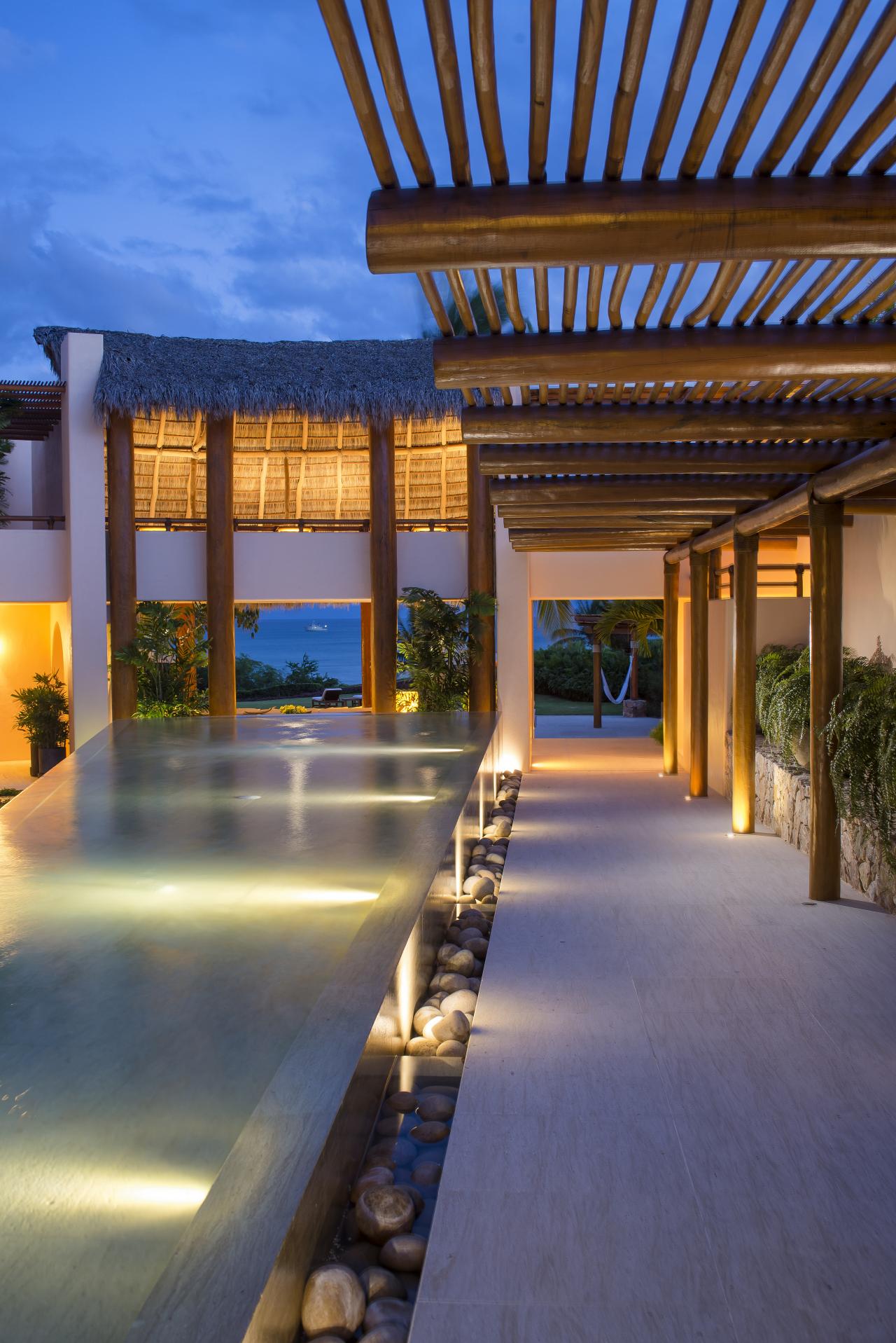 The luxurious five star Caida de Agua resort is a place for escape and indulgence. Overlooking the breathtaking Pacific Ocean, and within prime proximity to the famous Jack Nicklaus Signature Golf Course, this lavish Punta Mita resort villa will sweep you off your feet. Located within the gated Punta Mita resort residential community in Lagos del Mar, Caida de Agua offers an abundance of striking beauty and sophistication, architecturally, artistically, and naturally.