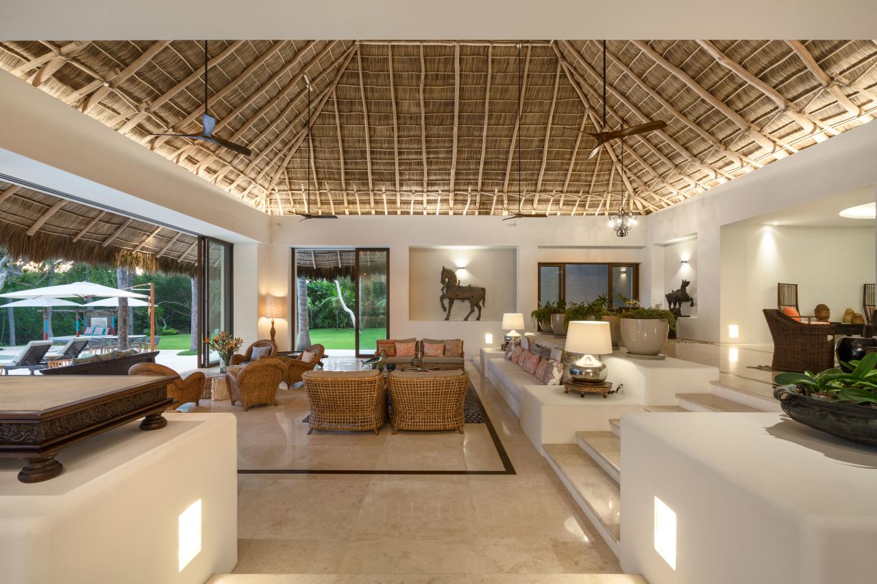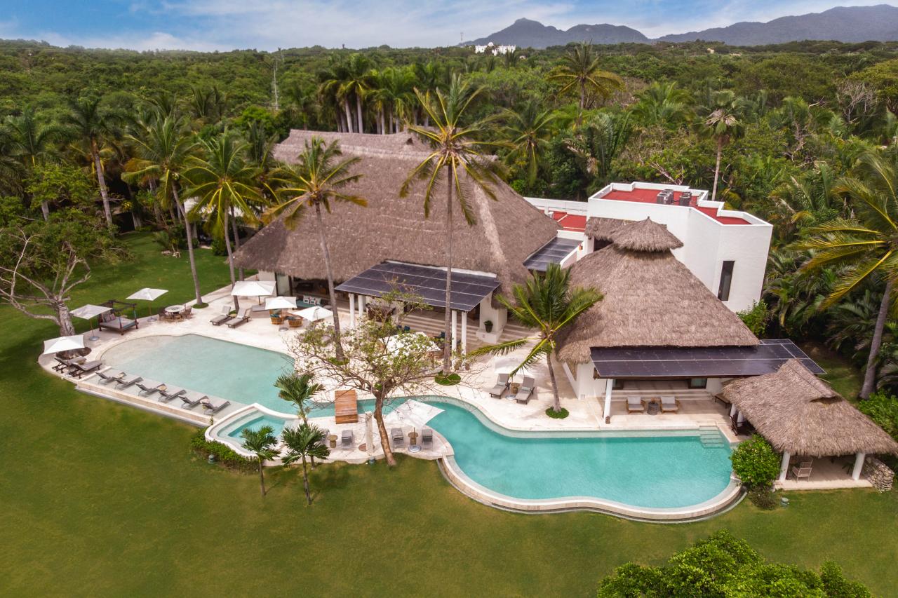 Most of the living areas have spectacular view of the private pool and the Pacific Ocean. The property has a primary home with expansive terraces which blend perfectly with the tropical lush of Punta MIta
