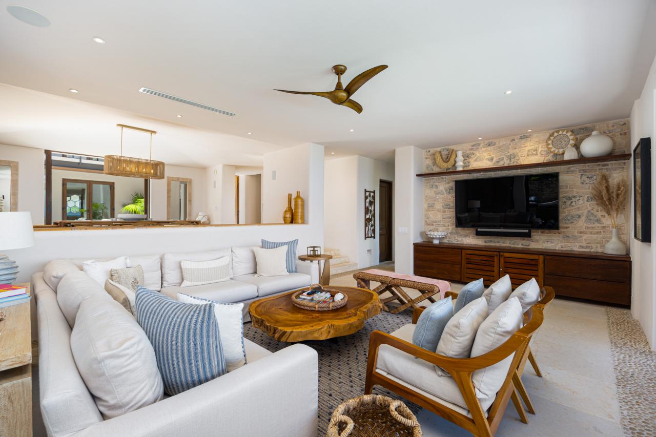 This villa includes four bedrooms, allowing space for up to ten friends or family members. A master suite features spectacular sunset ocean views from a private terrace with its own sitting area, an expansive master bathroom with an outdoor shower feature, and walk-in closets. Three additional bedrooms, two with a king bed each and one with two queen beds, provide en-suite bathrooms as well. Casa Bahia boasts dramatic high ceilings, wood beams in the living room and master suites, as well as fine marble flooring with carpet design in its bathrooms. Additionally, its well-conceived floor plan invites owners and guests to fully enjoy the experience of both the indoors and outdoors. At the heart of the villa, an open-concept great room allows access to a sitting area set off of the terrace, a fully-equipped kitchen and breakfast bar, and a dining area. A wooden bridge connects the Master Suite with a guest bedroom, while a central courtyard features a beautiful fountain and a cobblestone patio. Outside, guests can indulge in a heated infinity-edge pool.