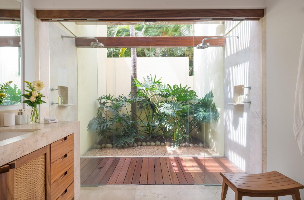 - Bedroom 1: Primary with king bed, en suite bathroom, outdoor shower, ocean view, sitting room, office terrace