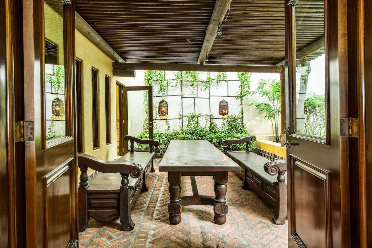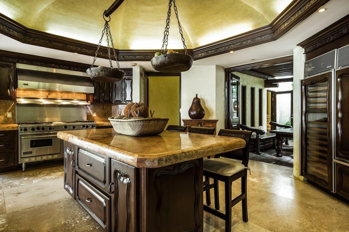 The indoor amenities at Casa Bella rival it's spectacular outdoor amenities. This luxury villa opens into the beautiful living area, perfect for entertaining guests before dinner. The formal dining area can seat 14 guests and its retractable glass doors open the space into the lush, green gardens outside. The home also boasts a fully equipped kitchen, every chef's dream! Beautiful finishes, loads of counterspace, and a wine refridgerator are just a few items that make this kitchen truely spectacular.
