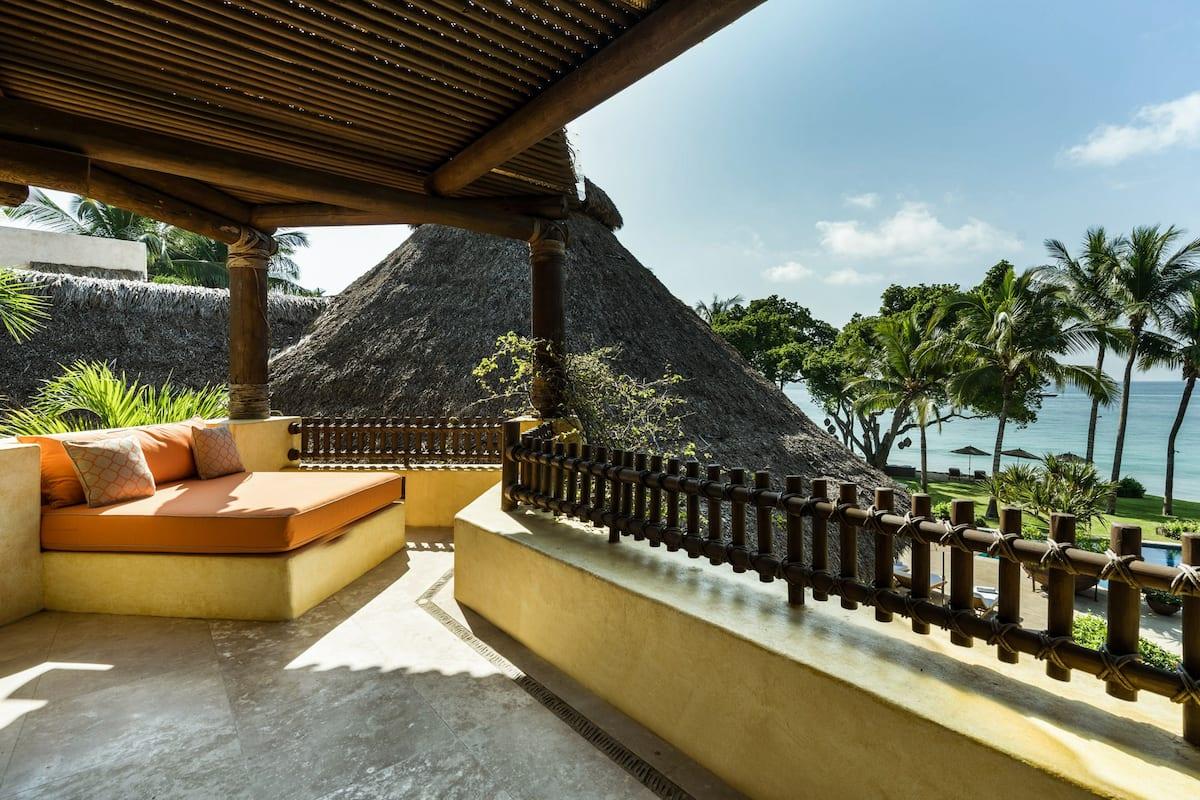 - Bedroom 5: King bed, en suite bathroom with stand along shower & bathtub, walk-in closet, TV, AC, safe, ceiling fan, private terrace with seating, ocean view