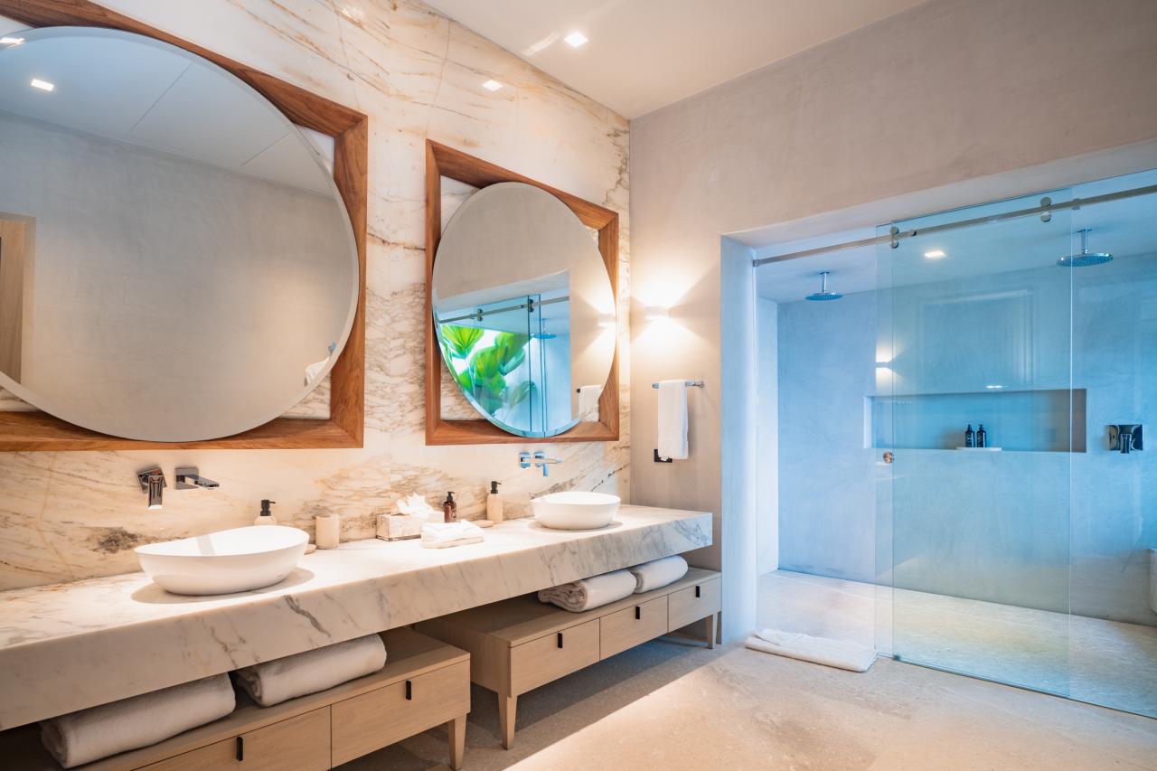 Bedroom 4: King bed, ensuite bathroom with double vanities, shower with dual rainfall showerheads, private terrace