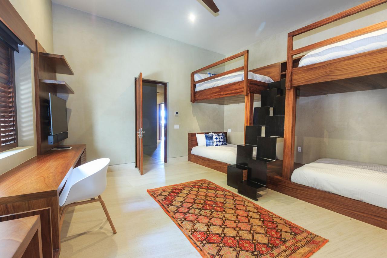 - Bedroom 4: Two queen beds, en suite bathroom with shower, al fresco shower, sound system, TV, AC