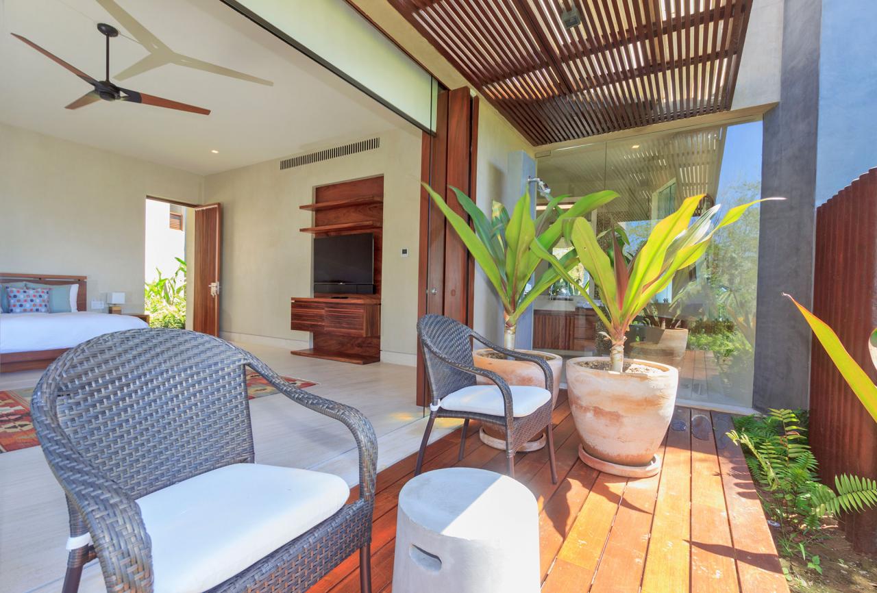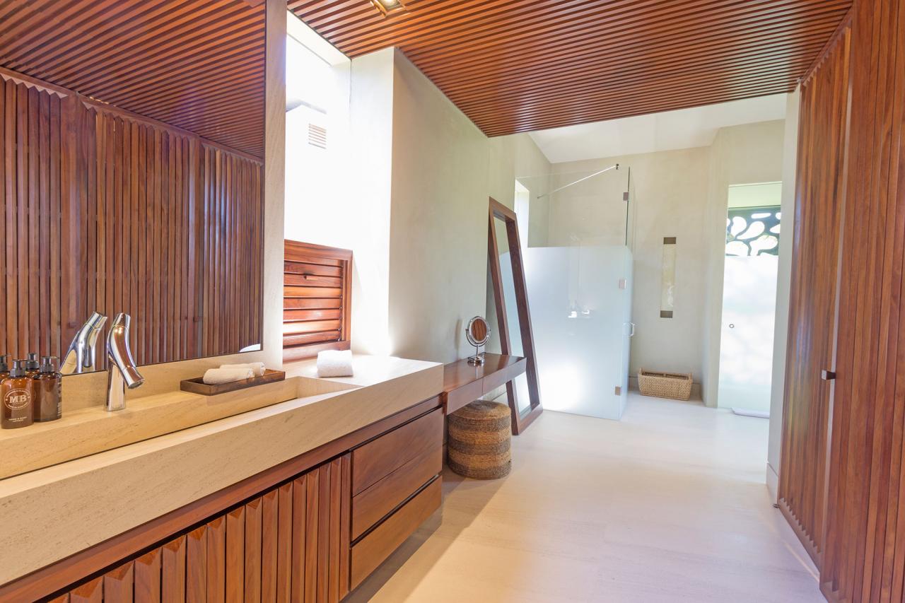 - Bedroom 2: King bed, en suite bathroom with bathtub and shower, al fresco shower, sound system, TV, AC