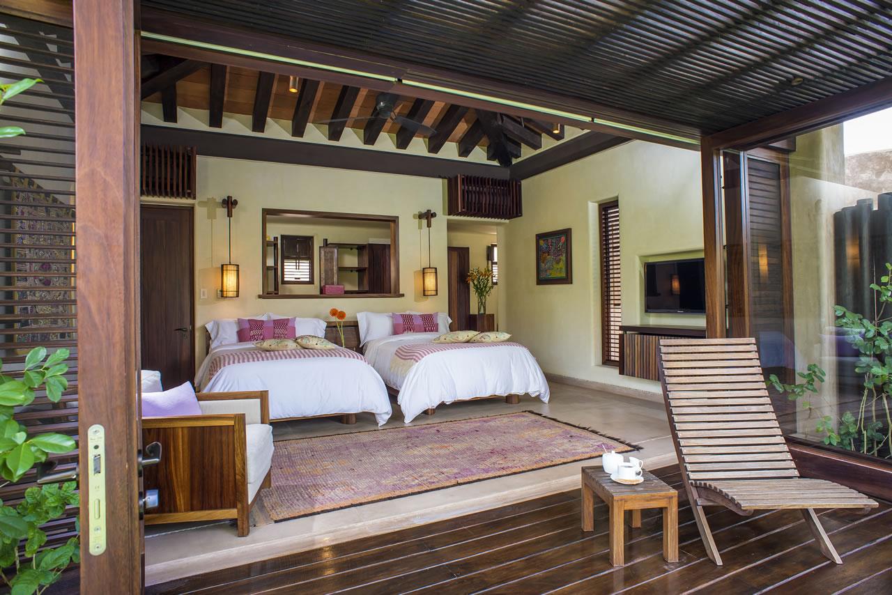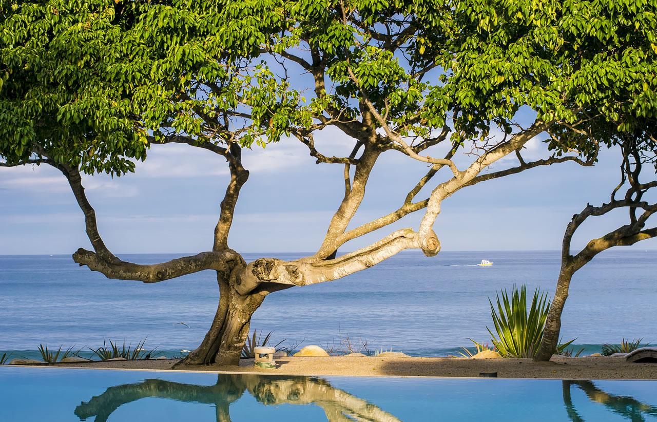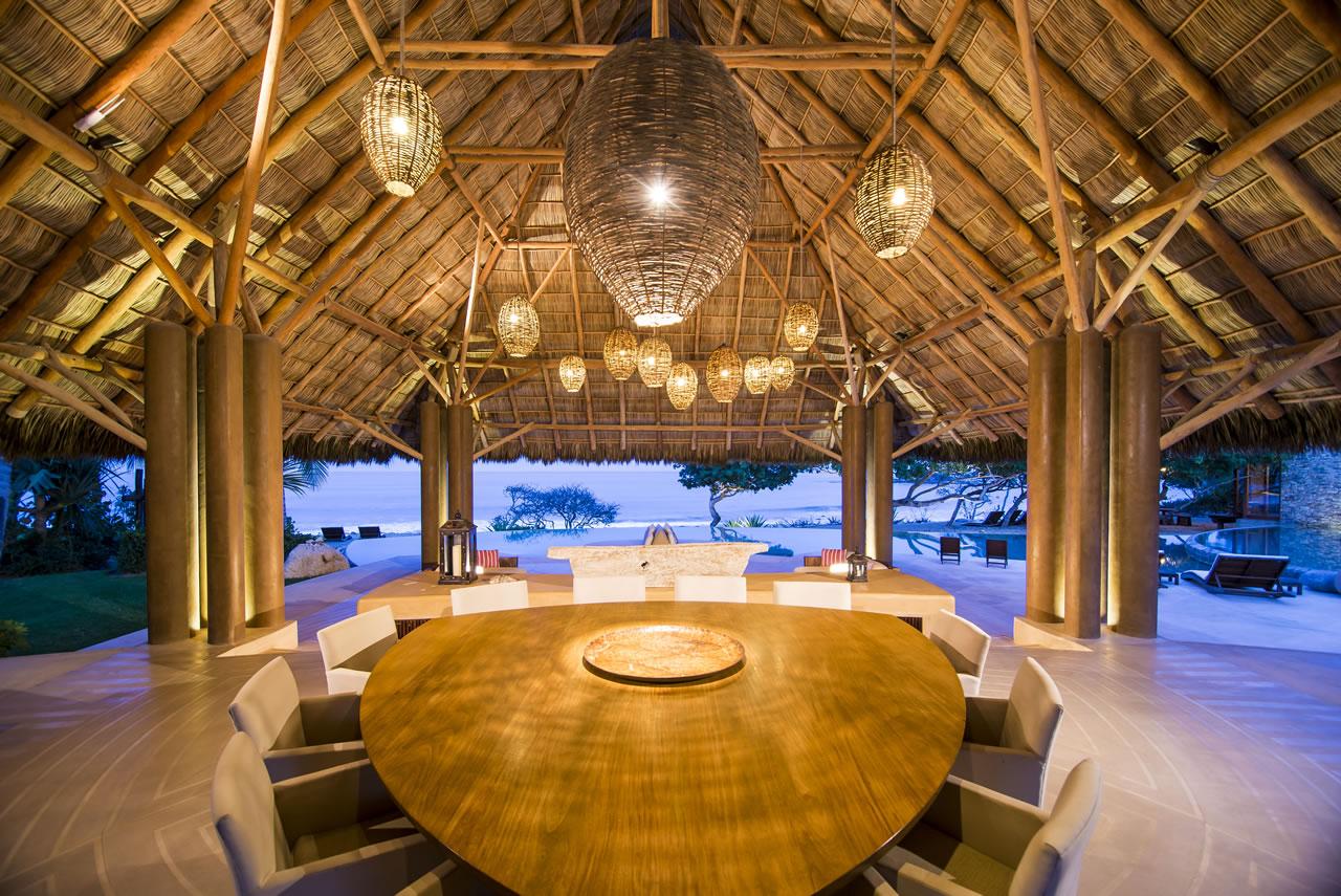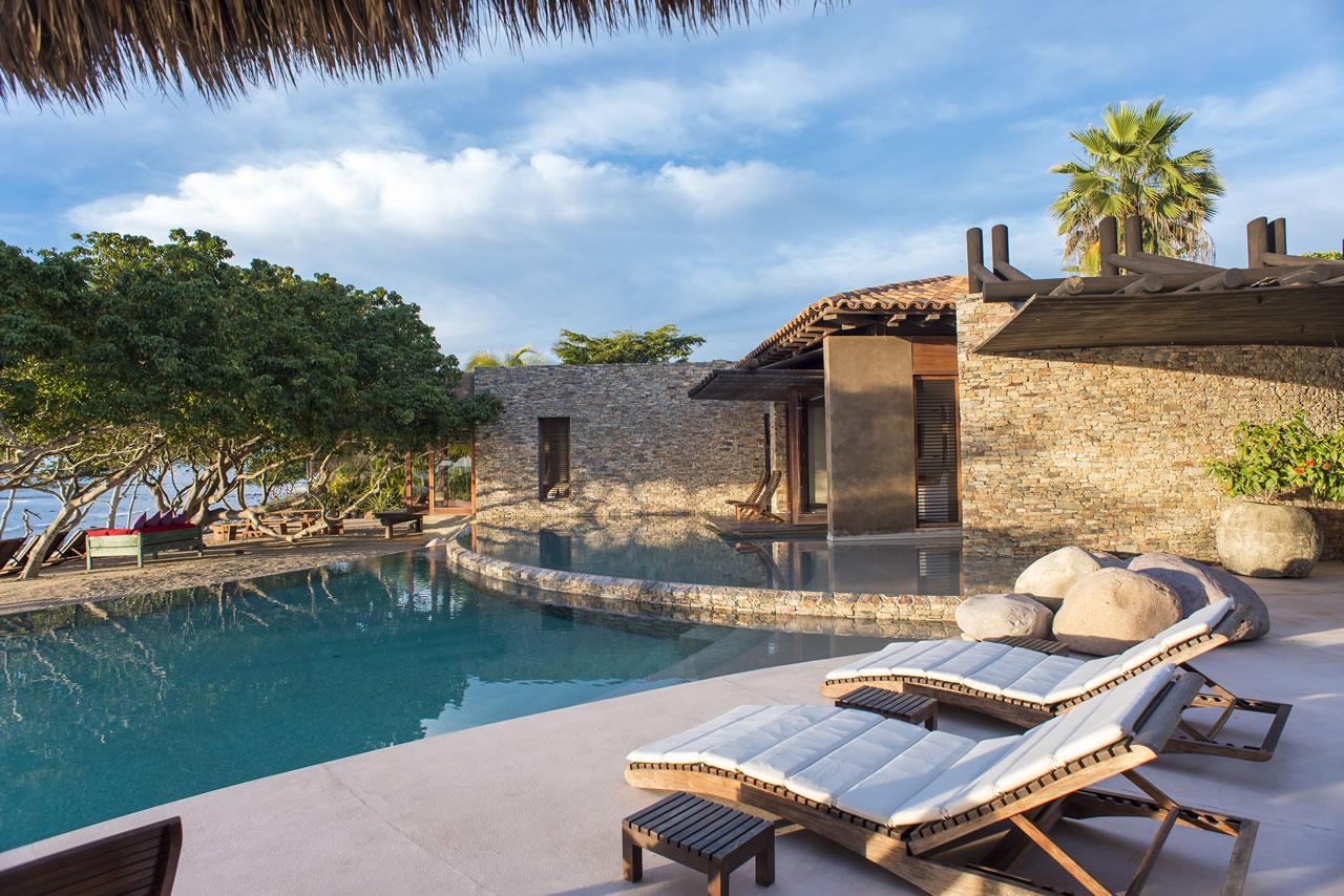 From world-renowned architects Manolo Mestre and Juan Collignon comes Casa Majani. Their holistic approach to architecture pays homage to the natural while incorporating the contemporary. Native simplicity and warm colors complement modern conveniences resulting in an alluring and meditative experience. Every room is designed with intention. A network of pathways through expansive reflection pools connects each unique structure, creating the illusion this remarkable casa is suspended over the powerful Pacific. Situated on the northern most tip of the Punta Mita peninsula, Casa Majani is located in La Punta Estates within the gates of the Punta Mita resort. Two connecting pools blend with sea and sky, enhancing undisturbed views of the blue horizon with over 150 ft. of infinity edge. The smaller of the pools encircles the Keili Suite, offering a dynamic and diverse swimming experience. Nearby, the whimsical bar extending unsupported from the wall is a restored vintage surf board. A ground level fire pit for intimate gatherings and fantastic sunsets is situated on the sand beach terrace. Come see why visitors fall in love with this Punta Mita villa!