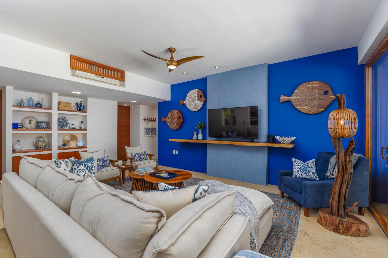 A beautiful condo that overlooks the expansive Jack Nicklaus golf course. This spacious, 4 bedroom / 4.5 bath condo is professionally decorated in a contemporary, vibrant,and colorful fashion. Not only will you enjoy the condo itself, its large private outdoor terrace,the lovely pools at the boutique condominium complex, you will also delight in the premium membership it holds, this allowing you access to all the private beachclubs of the development: Pacifico, Kupuri, and Porta Fortuna Beach Clubs.