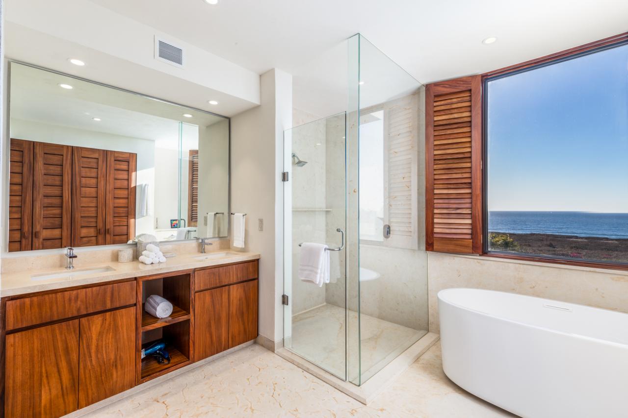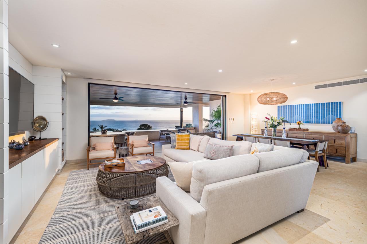Condo Cualli also has amazing features inside the space. There are 3 gorgeous bedrooms, all with spectacular views of the ocean and ensuite bathrooms equipped with helvex fixtures. There are Smart TVs fully equipped with streaming service in all of the bedrooms and the living room. This condo can easily accommodate groups or families, 8 adults or 4 adults with 6 children can comfortably sleep in Condo Cualli.