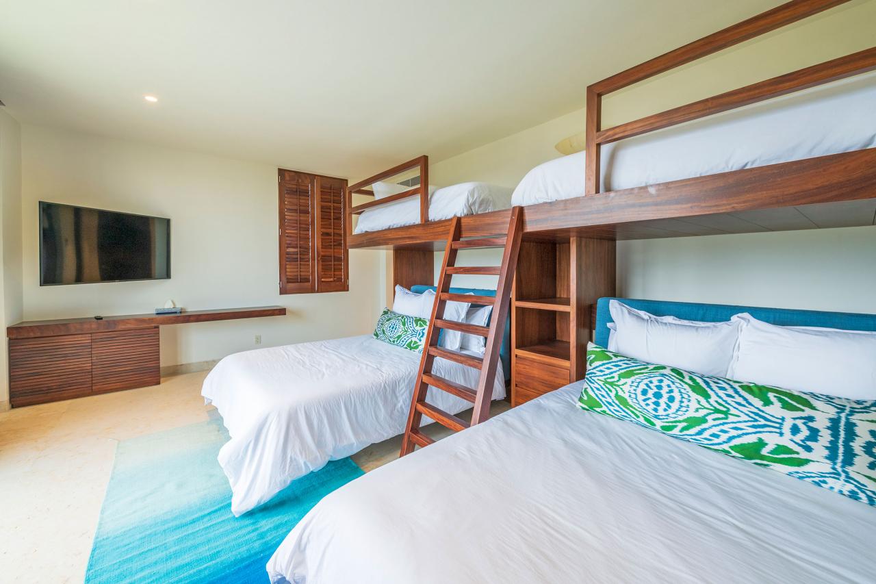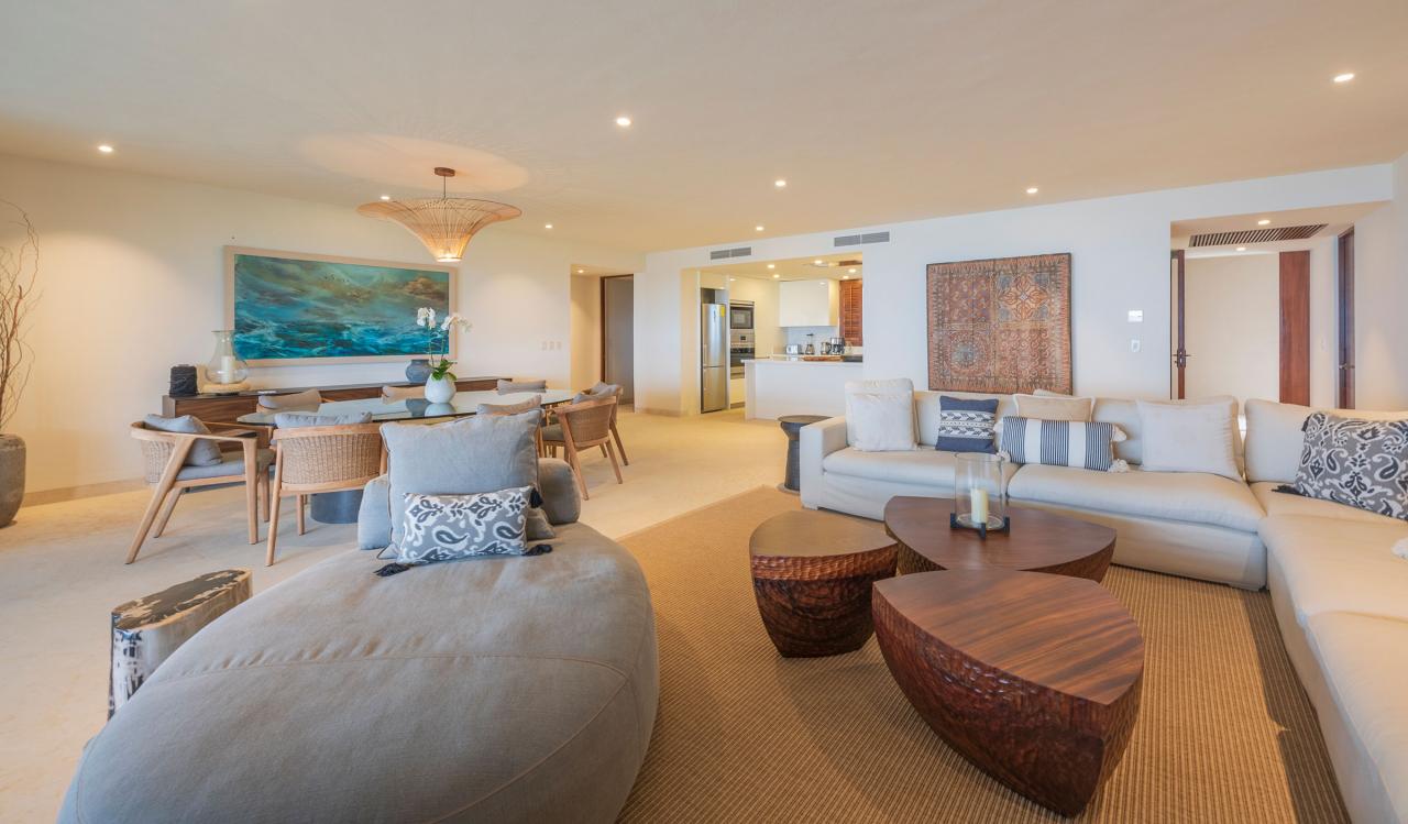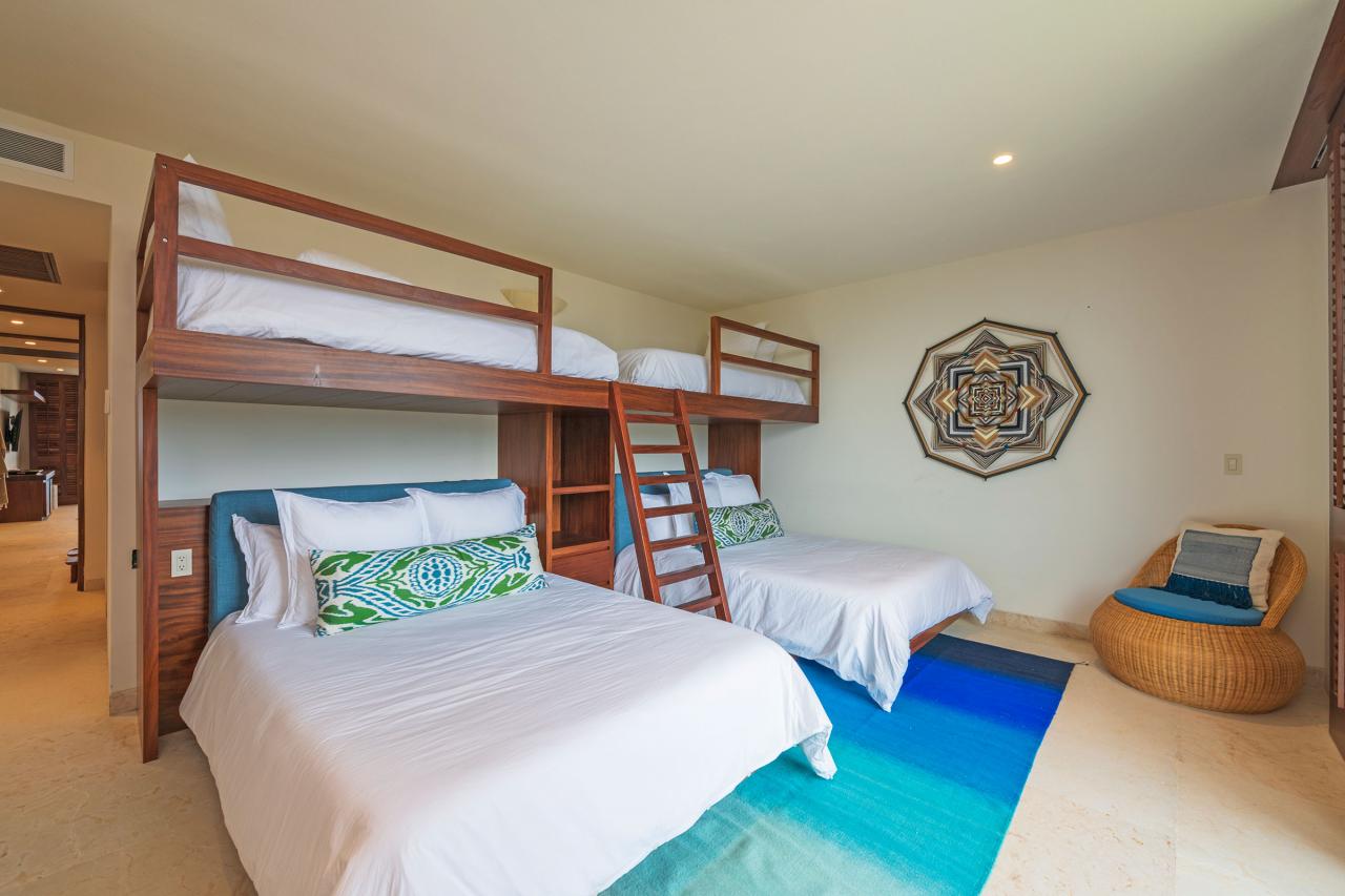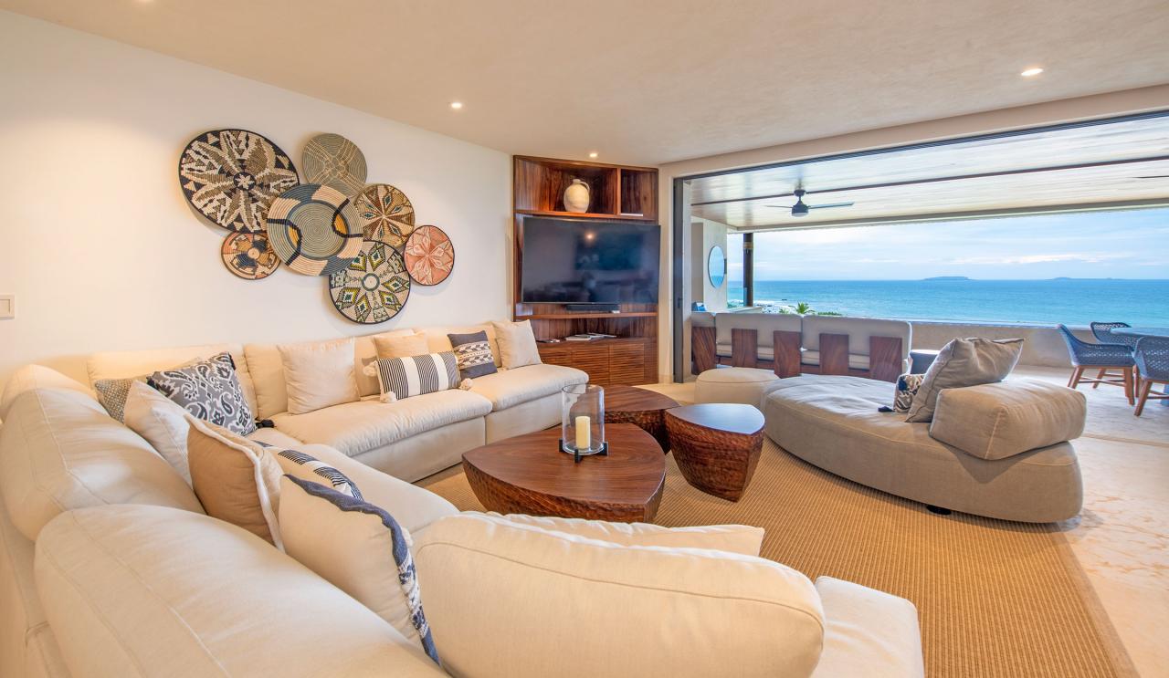 Condo Las Olas is a lovely Punta Mita resort rental at Tau. It has three bedrooms, each with an ensuite bathroom, to accommodate up to ten guests. Guests can greet the day with stunning sunrises or relax while the sun sets into the ocean. Condo Las Olas has air conditioning, a gourmet kitchen, a six-passenger golf cart, four bikes, a private pool, and more.