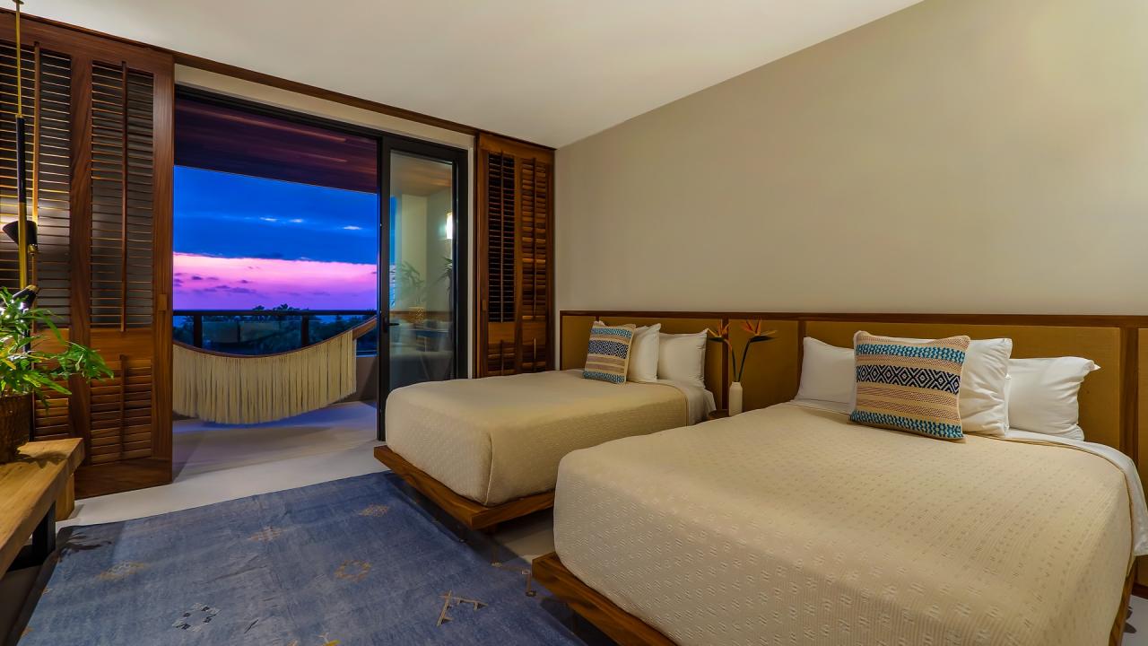 Condo Mar is a Punta Mita vacation condo. Condo Mar offers guests Premier Golf Access to Pacifico Beach Club, Kupuri Beach Club, and Sufi Ocean Club; with an extra fee, guests can enjoy the Pacific & Bahia Golf Courses, Tennis Center, and Fitness Center. Along with the membership, guests can enjoy various other amenities, such as a four-passenger golf cart, a terrace plunge pool with a lounge and dining area, and services such as daily breakfast cooking, housekeeping, and a concierge. This villa rental in Punta Mita has room for eight guests within the three bedrooms. Condo Mar is the perfect vacation rental.
