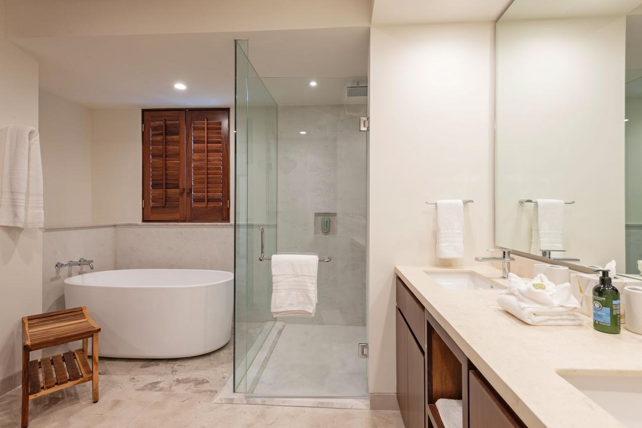 Primary Bedroom: This room is equipped with a king-sized bed, an oceanview terrace, and an ensuite bathroom.