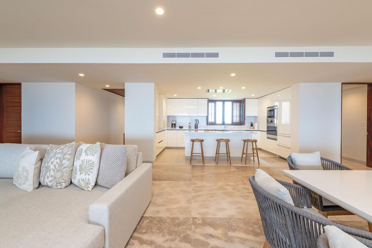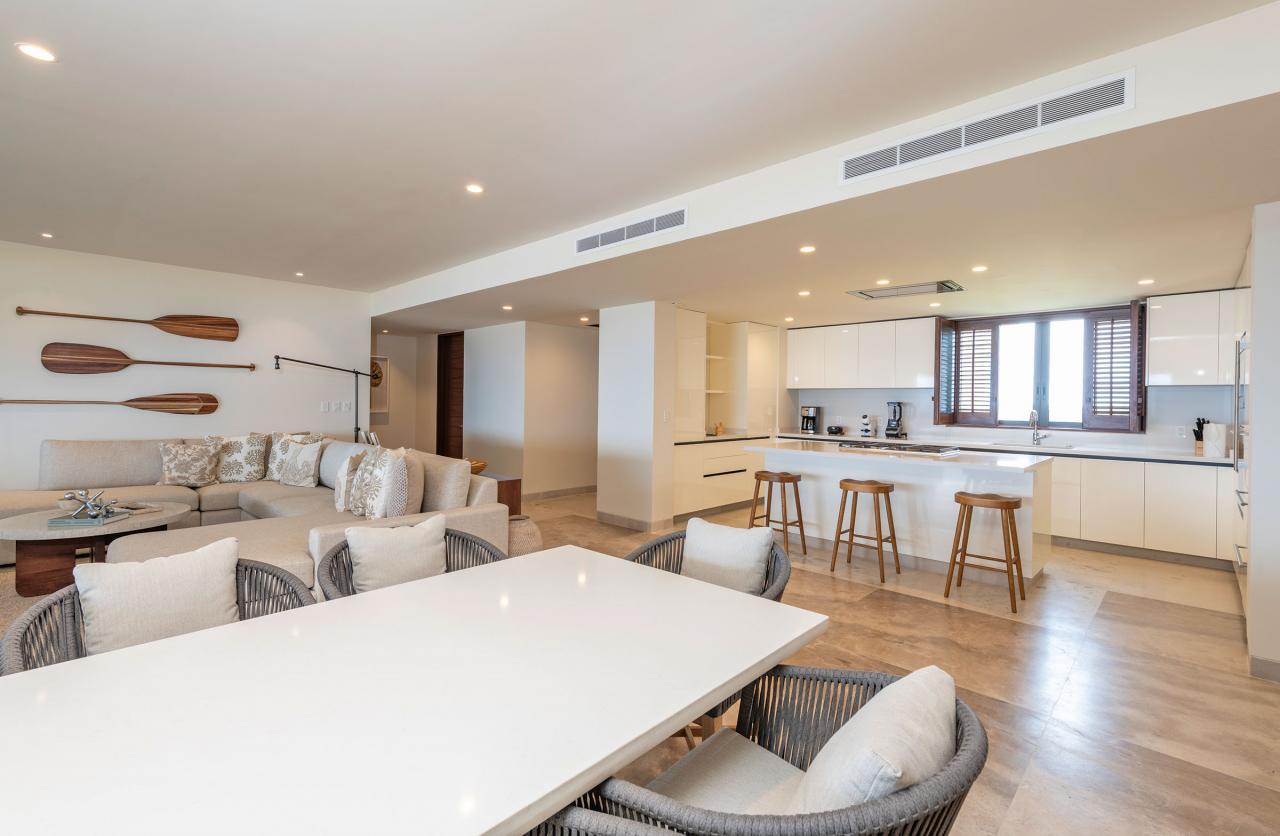 Condo Nautica, a Punta Mita vacation rental, offers the ultimate luxury experience. Guests can enjoy this gorgeous four-bedroom condo in El Encanto, Punta Mita. Condo Nautica has breathtaking ocean views and top-tier amenities in an exclusive brand-new community. Families and groups can relax and recharge in this flawlessly designed, modern, and comfortable condo.