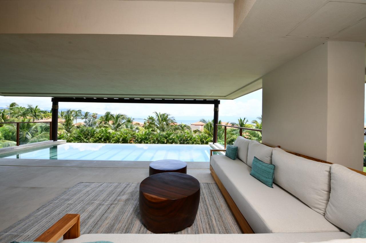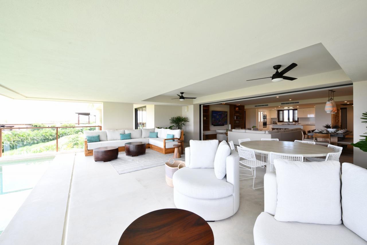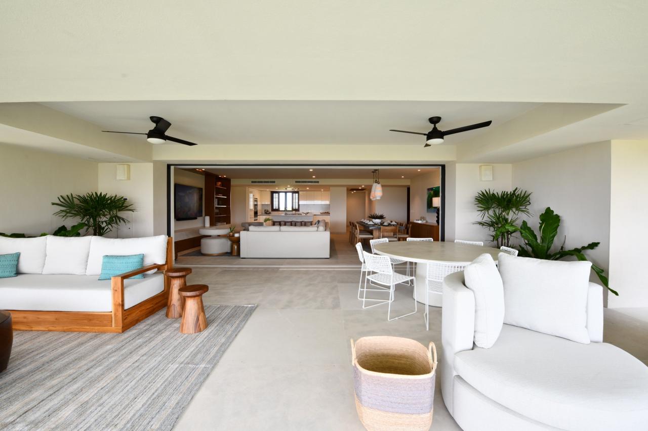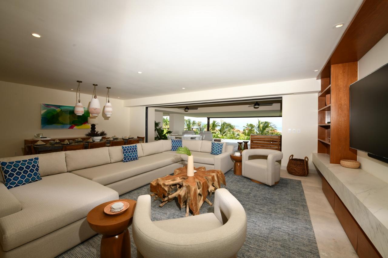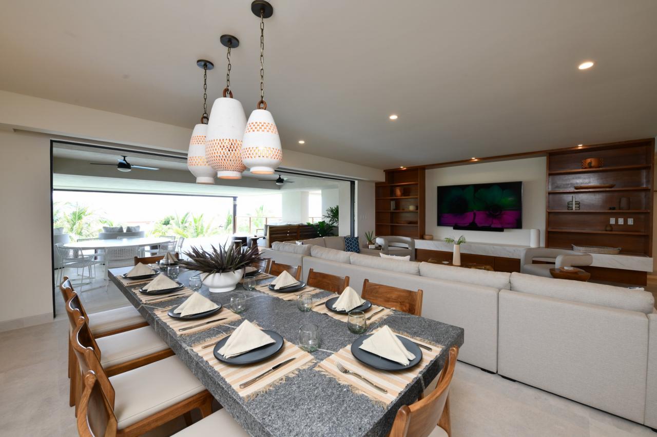 This luxurious 4-bedroom Condo Nova, located within the prestigious Punta Mita community, offers an exquisite coastal living experience amidst a championship golf course designed by Jack Nicklaus. The residence is set against a backdrop of lush greens and manicured fairways, with an open floor plan that seamlessly integrates the indoor and outdoor spaces. Panoramic views of the tropical landscape and the golf course enhance the elegance and tranquility of this ground-level Punta Mita vacation retreat.