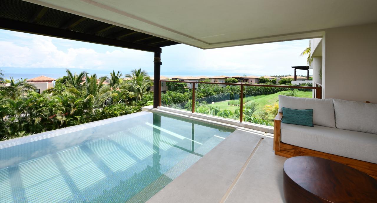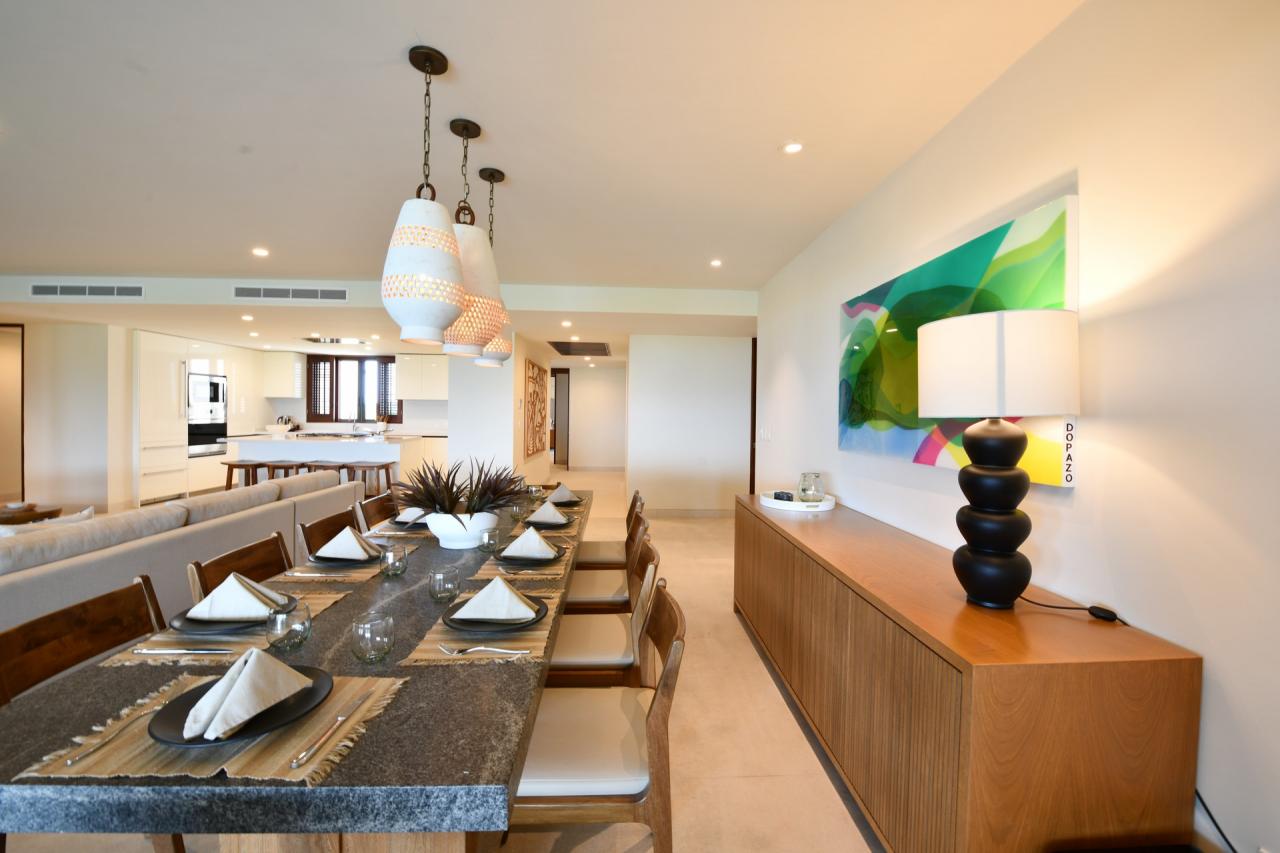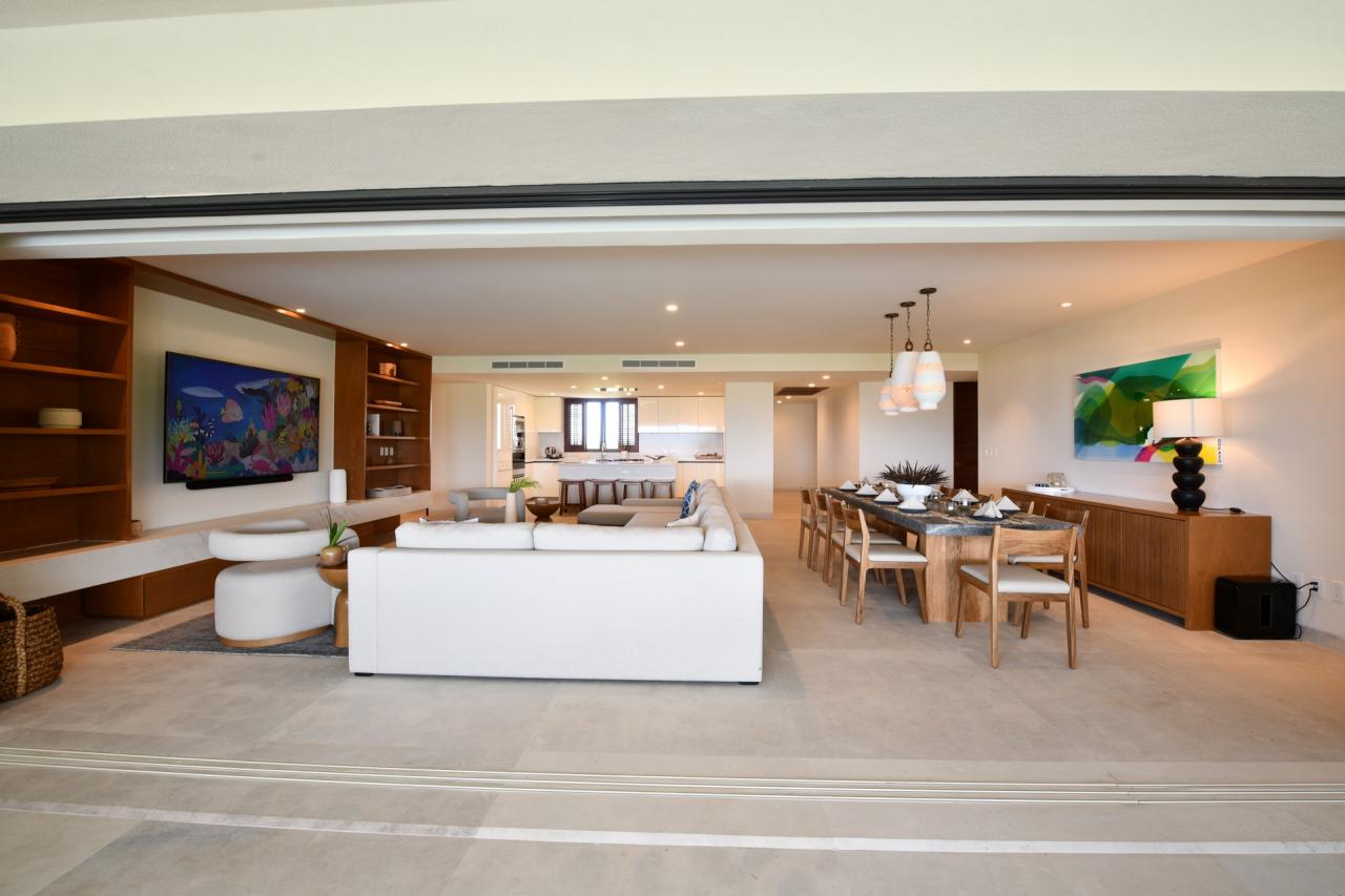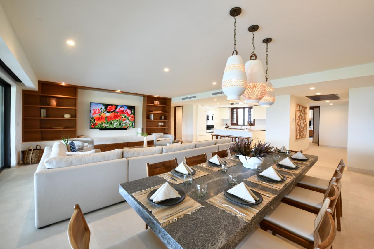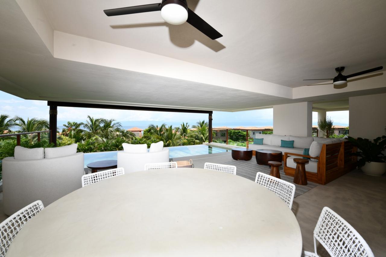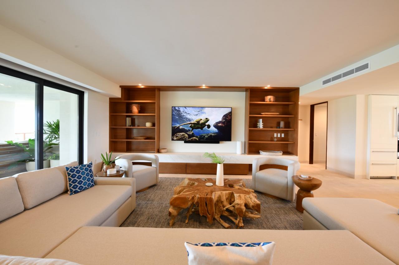 This luxurious 4-bedroom Condo Nova, located within the prestigious Punta Mita community, offers an exquisite coastal living experience amidst a championship golf course designed by Jack Nicklaus. The residence is set against a backdrop of lush greens and manicured fairways, with an open floor plan that seamlessly integrates the indoor and outdoor spaces. Panoramic views of the tropical landscape and the golf course enhance the elegance and tranquility of this ground-level Punta Mita vacation retreat.