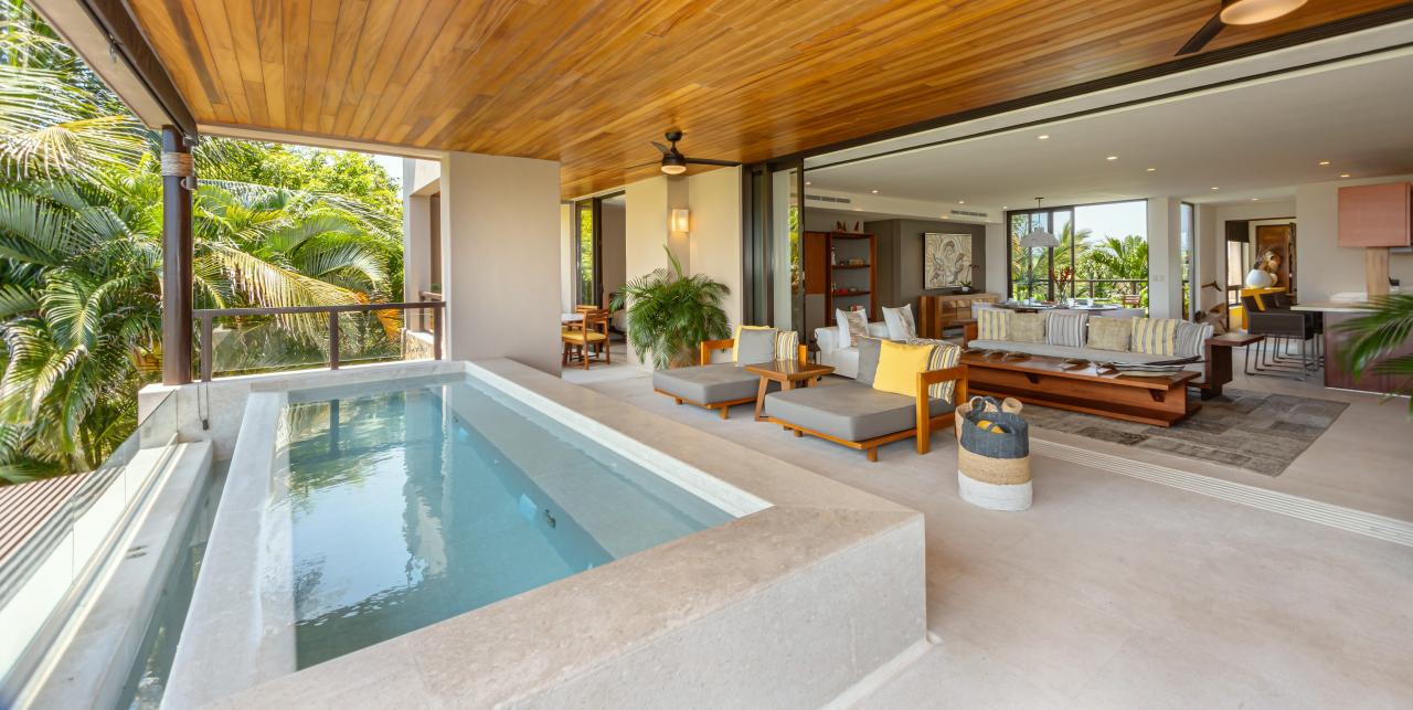 Condo Serna is a beautiful three-bedroom and three-bathroom condo located in the Las Marietas development. This Punta Mita condo has gorgeous views, a terrace plunge pool, and a fully equipped kitchen. In addition, guests benefit from a Premier Golf Membership, a golf cart, and access to numerous beach clubs and golf courses. Condo Serna is the perfect place for families and friends to relax and enjoy a Punta Mita vacation.