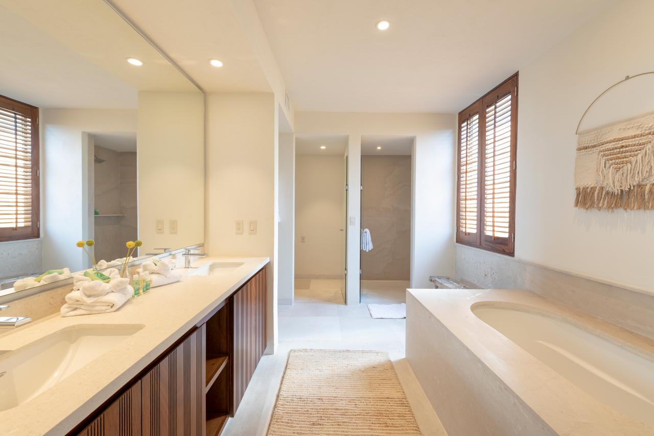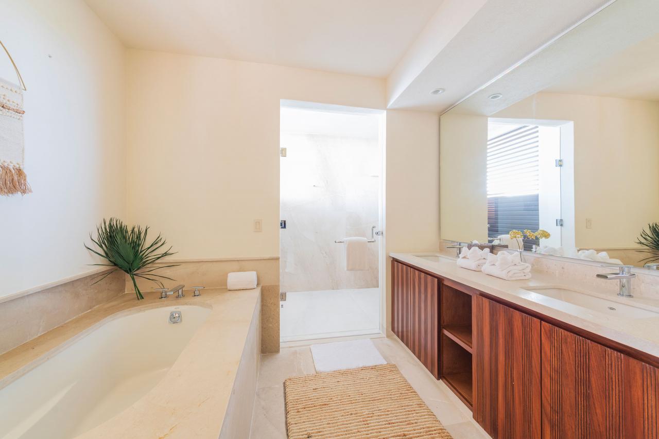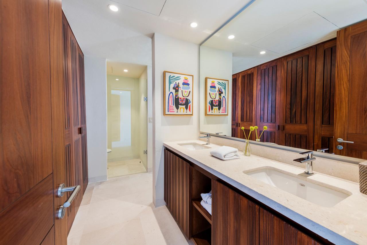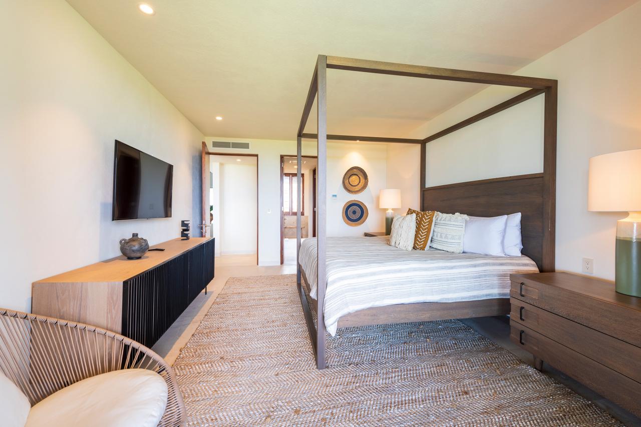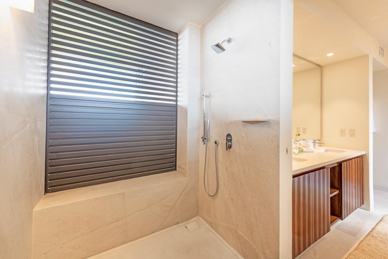 Condo Teresa is located inside the gates of Punta Mita, next to the 18th hole of the Jack Nicklaus Signature Bahía Golf Course. Condo Teresa has incredible outside features such as an outdoor shower and a private terrace with a plunge pool to make your stay as luxurious as possible. When inside Condo Teresa, there are two gorgeous master bedrooms, both with ensuite and amazing ocean views. The third bedroom has two queen beds and a set of bunk beds, with a great view of the ocean.