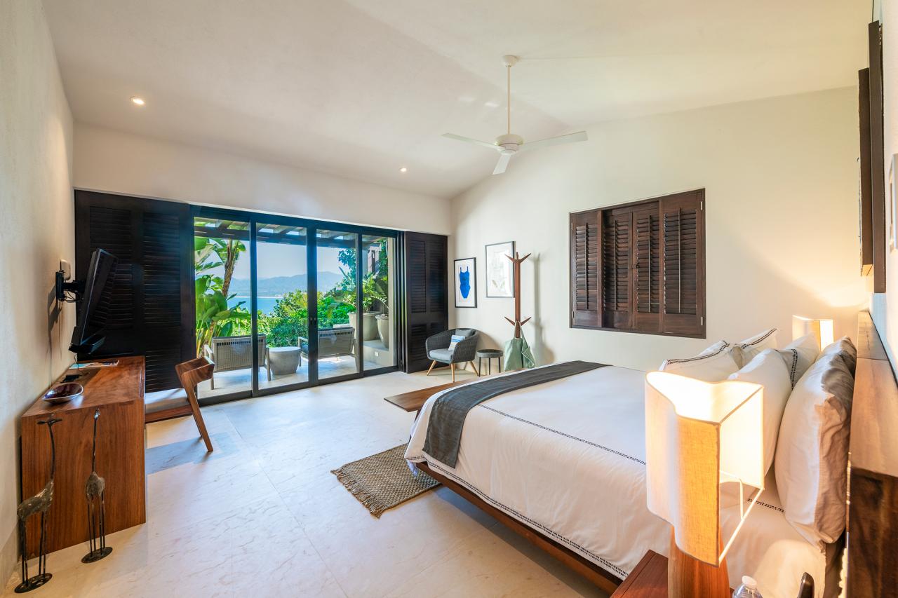 Bedroom 5: This room is equipped with two double-sized beds, a terrace with an ocean view, a TV, a closet, air conditioning, and a private bathroom.
