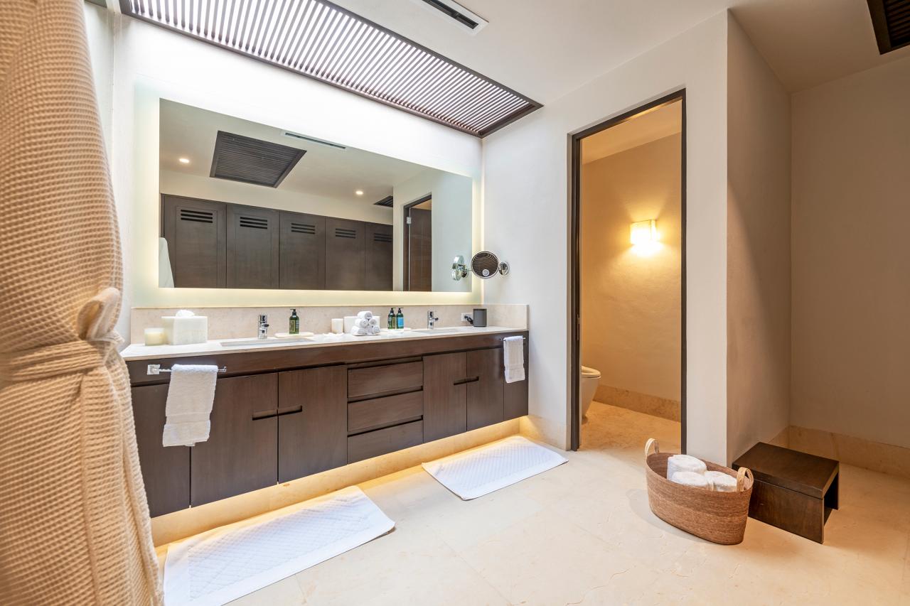 Primary Bedroom: This room is equipped with a king-sized bed, a terrace with an ocean view, a sitting area, a closet, a TV, air conditioning, and a private bathroom with a bathtub.