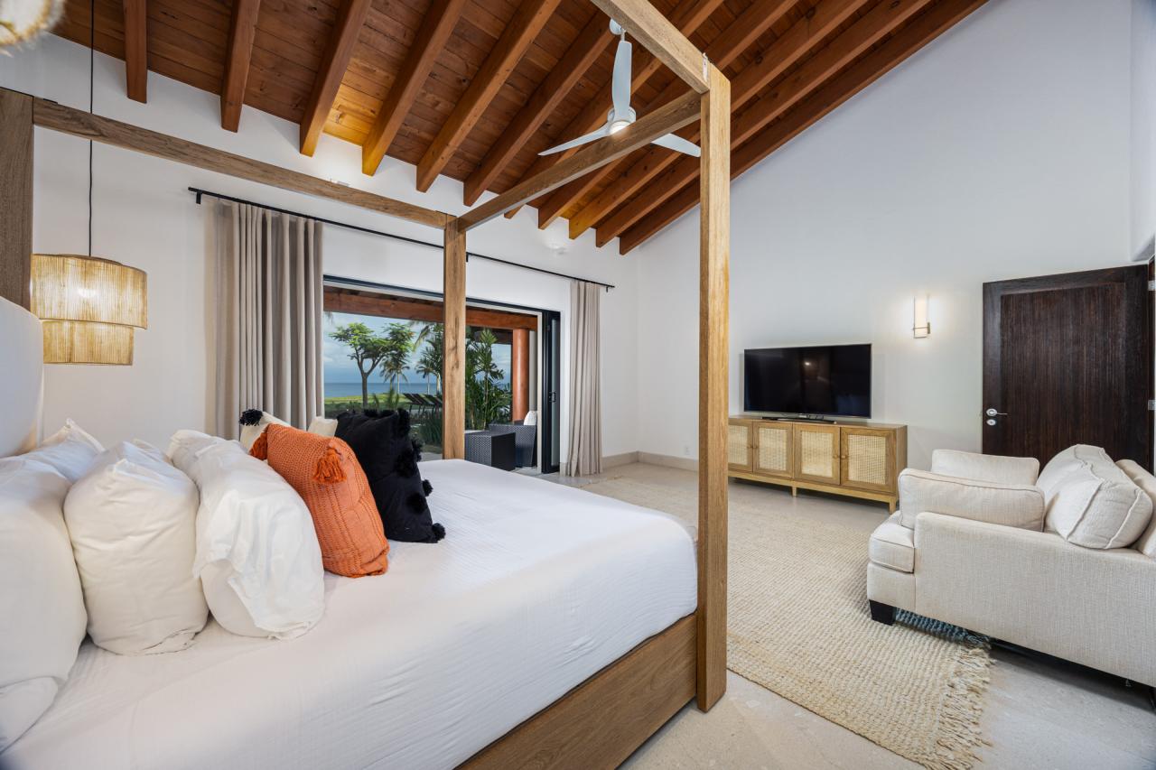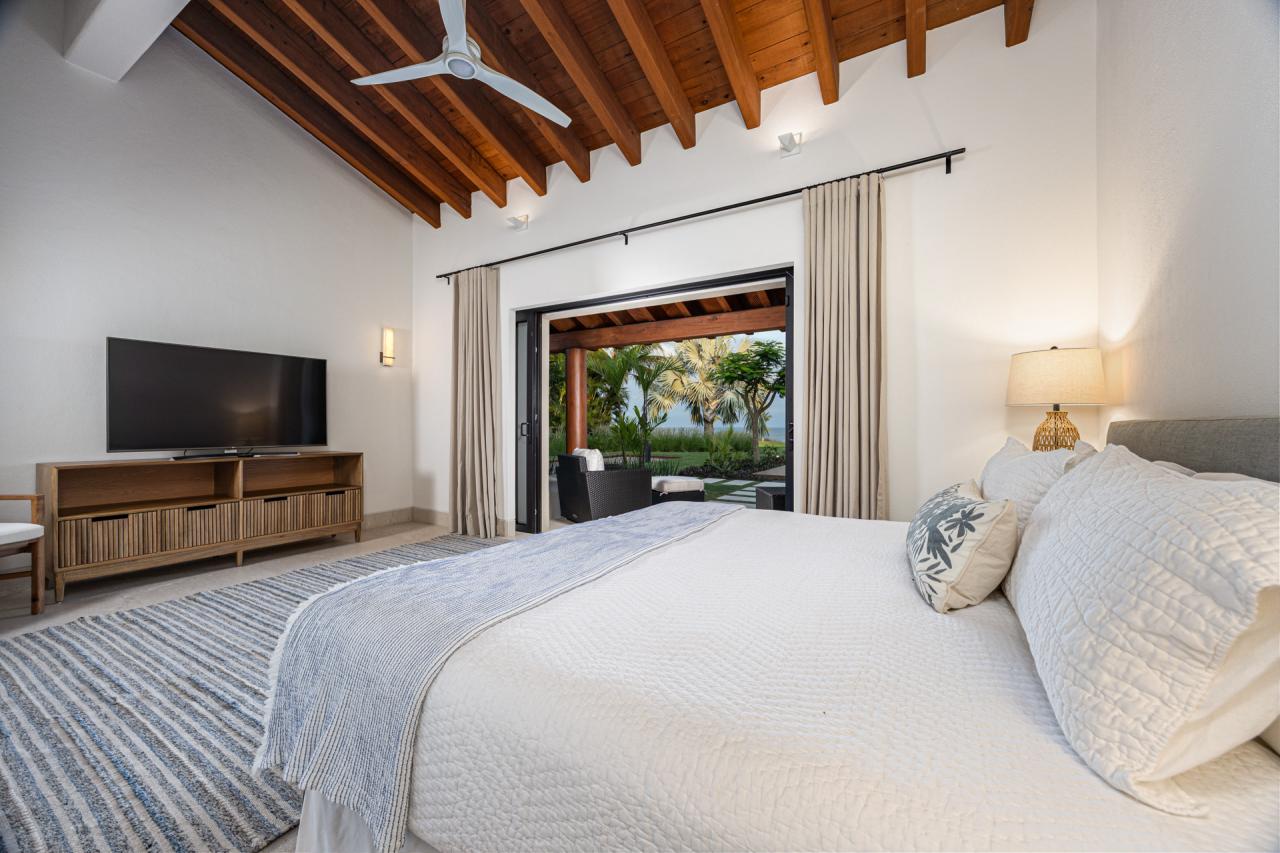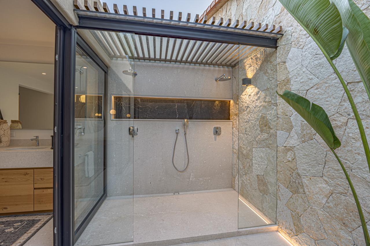 Primary Suite 2 – 1 King bed, TV, ensuite with outdoor shower. Ocean view terrace with direct pool access.