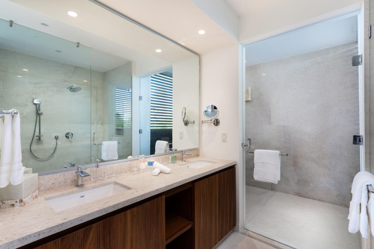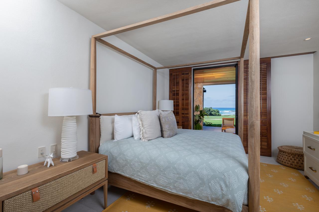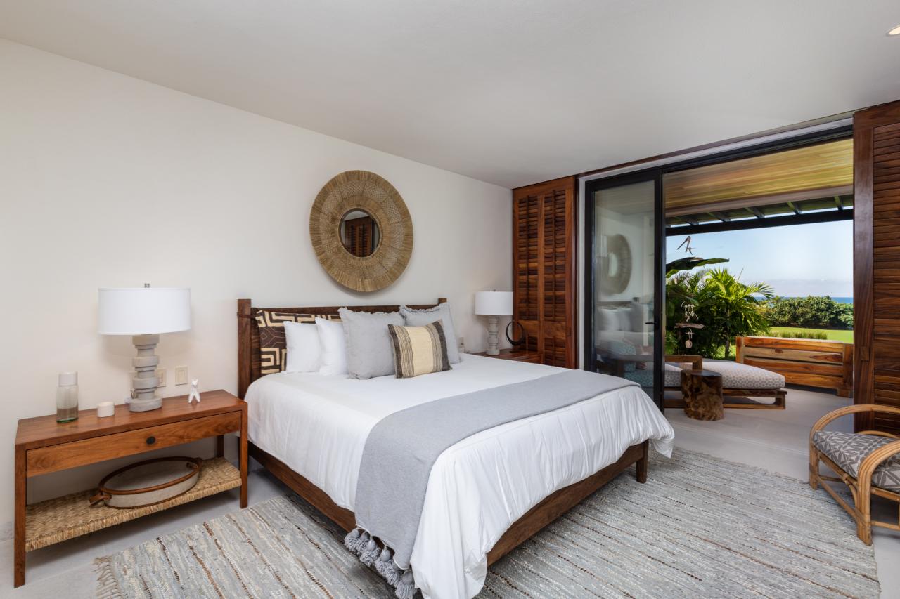 - Bedroom 2: King bed, en suite bathroom with indoor and outdoor shower, outdoor terrace with ocean view