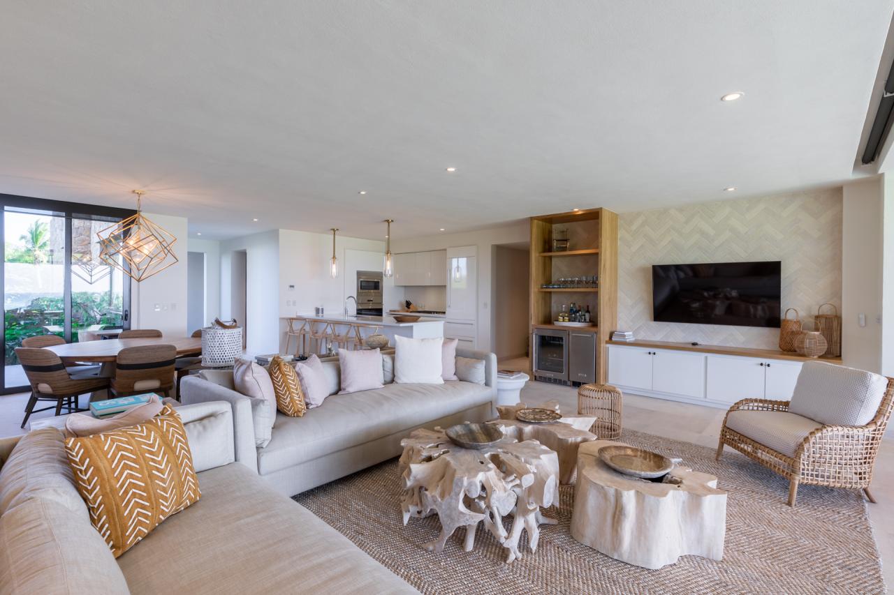 Las Marietas D101 is a brand new 3 bedroom condo with pool, outdoor daybed and outdoor dining for six people. The first floor condo enjoys amazing ocean views and has the outlook of a ground floor condo. With tasteful interior design and furnishings making this condo the jewel of the Las Marietas. Fully equipped open plan kitchen and living room with every convenience you require such as microwave, wine fridge, ice maker, washer dryer, outdoor Grill, Sonos sound system, Apple TV and Netflix.