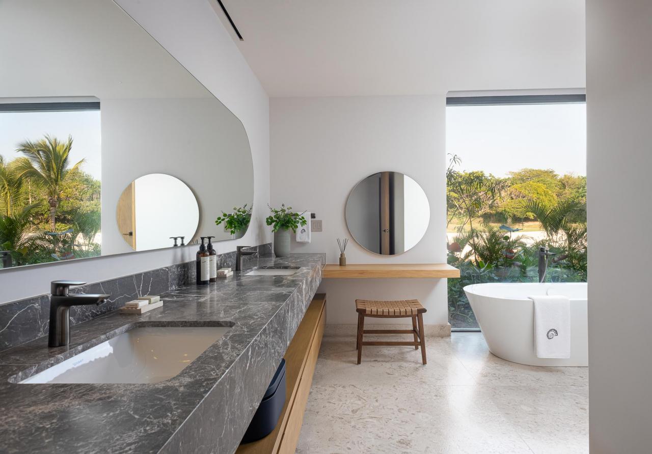Pacifico 17 Bedroom Estate consists of two villas located in Pacifico Estates, an elite Punta Mita enclave next to The St. Regis Punta Mita Resort. The first villa, Punta Pacifico Norte, offers 9 bedrooms with sleeping capacity of 20 guests while the second, Punta Pacifica Sur, offers 8 bedrooms with sleeping capacity of 18 guests. The estate's location offers truly spectacular Pacific Ocean and sunset views, adjacent to the 18th fairway of the Pacifico golf course. With Premier access to Punta Mita Resort amenities such as beach clubs, golf courses fitness centers, and tennis courts. Daily housekeeping and chef services (food cost additional) make this a relaxing Punta Mita villa escape.
